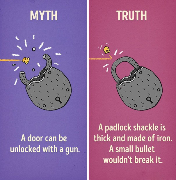 Filmi dejstva pogosto predstavijo na gledalcu všečen način, zato mnogokrat ne odražajo resničnosti. Zato smo poiskali nekaj mitov, ki jih je pomagala ustvariti filmska industrija.