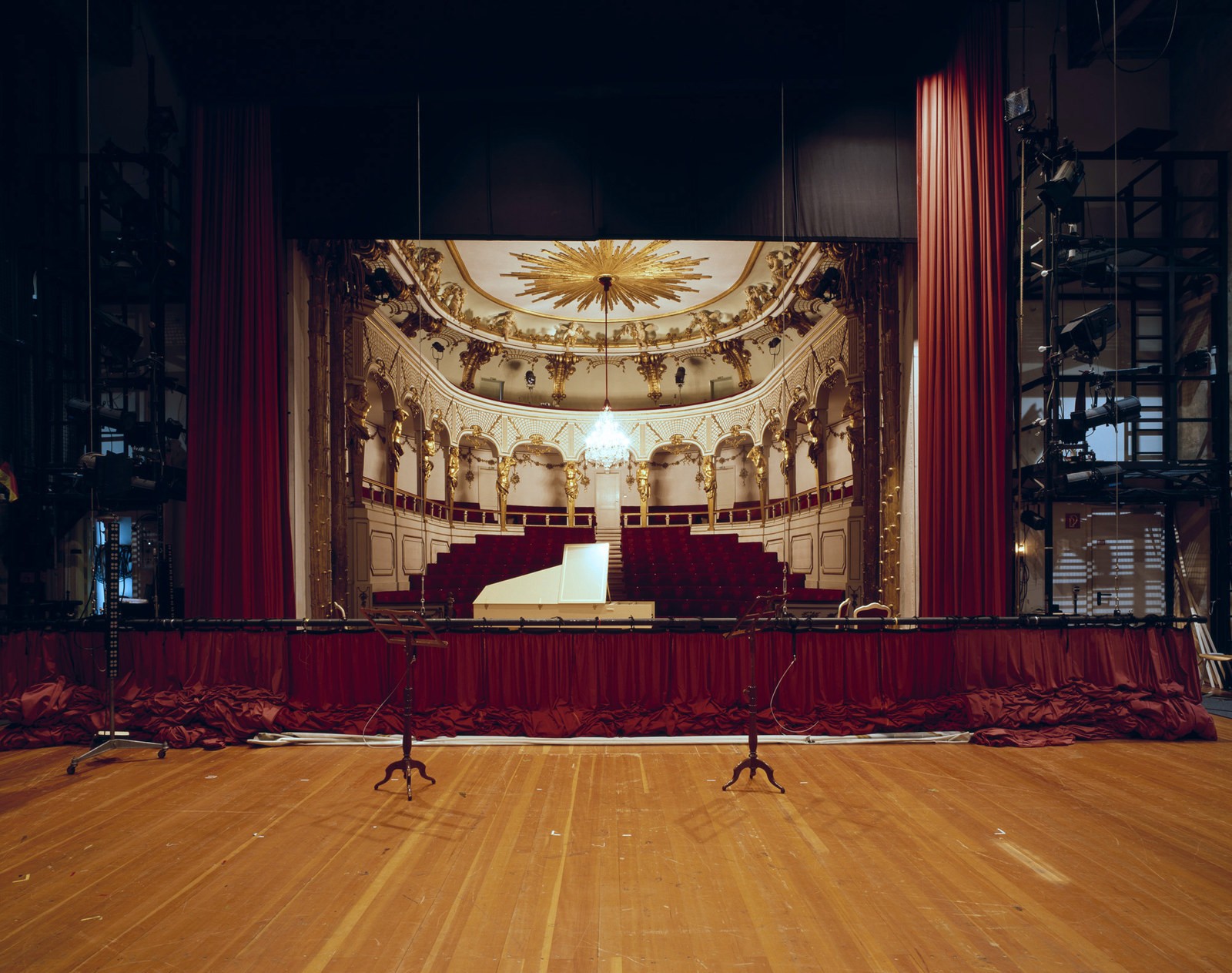 Frahm questiona a hierarquia com fotografias de teatro a partir da perspectiva dos atores. instituições de arte.