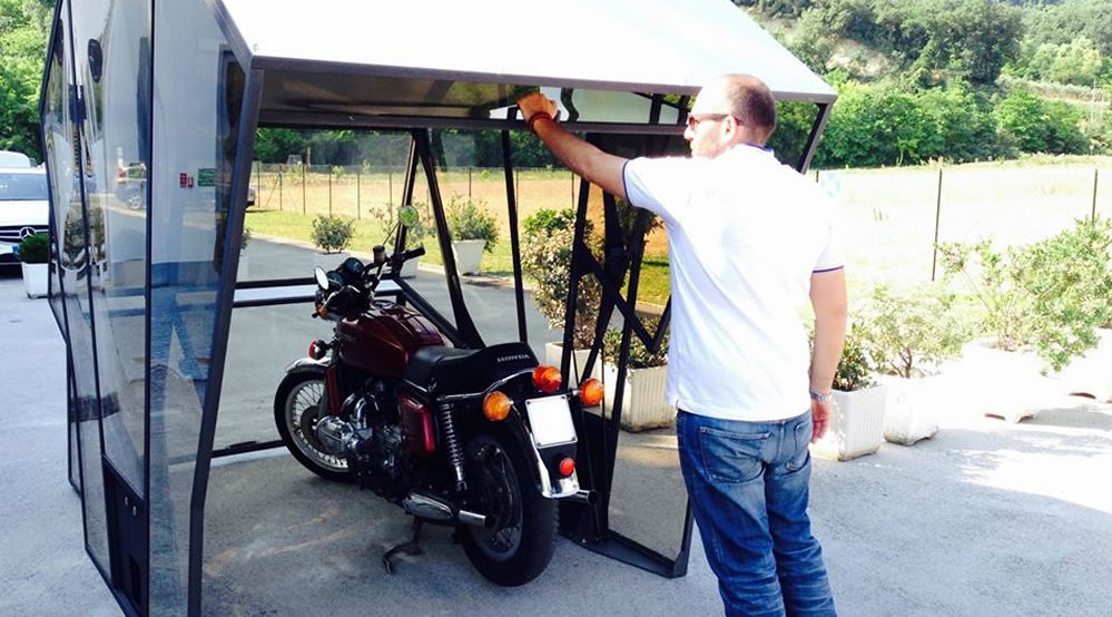 Se você não tem espaço e dinheiro para possuir um imóvel com garagem, isso não significa que você pode deixar seu carro à mercê das intempéries. A solução para isso é o GateBox, um sistema de cobertura dobrável que protege o cavalo de aço do sol, granizo, chuva, gelo, vento, excrementos de pássaros, etc. A garagem com abertura automática também pode ser remodelada e equipada com painéis solares, ar condicionado, alarme, aspirador compacto, etc.