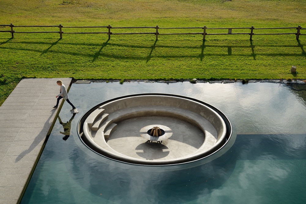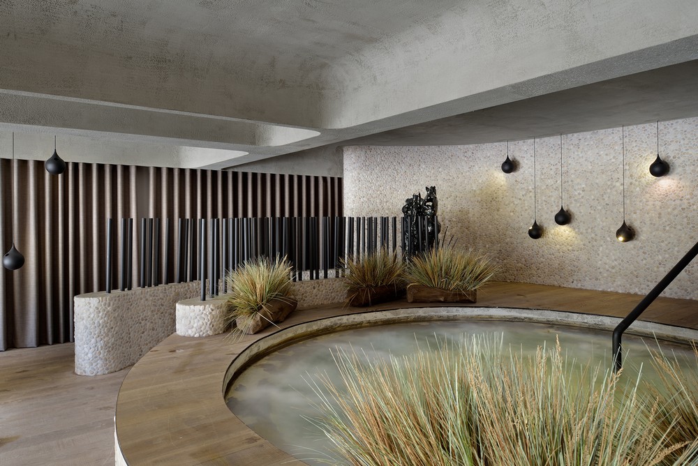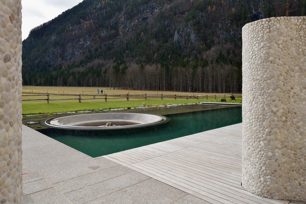 A maioria dos anteriores centros de bem-estar ocupava uma piscina menor, formada naturalmente, que se abria diretamente para o terraço ensolarado em frente ao edifício. Para ganhar e recuperar o espaço necessário para novos programas de bem-estar, estão em Unidades substituiu parcialmente a piscina por uma maior banheira de massagem, e parte da piscina agora está área de descanso circular com lareira. O terraço para banhos de sol foi agora ampliado com piscina natural, e o reflexo na água enfatiza ainda mais a bela vista.