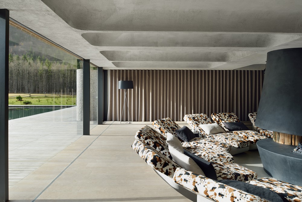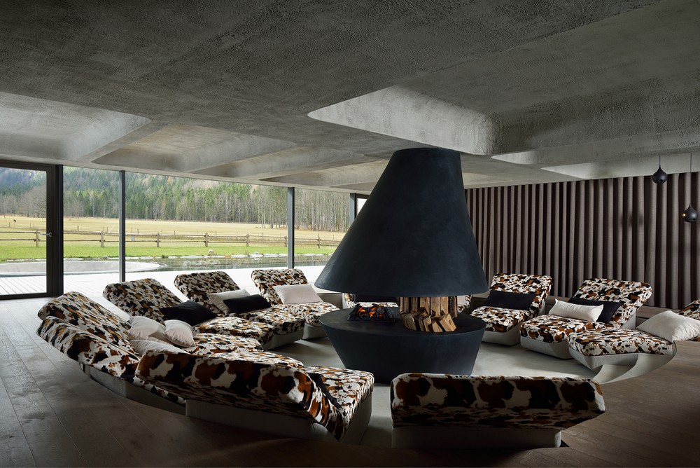 O bem-estar do hotel é composto por quatro secções programáticas distintas, que se encontram espalhadas por todo o espaço, mas ao mesmo tempo com transições elegantes conectados em um todo. O espaço central é definido por grande jacuzzi aquecido e um espaço com poltronas confortáveis. Uma grande janela panorâmica que atravessa toda a parede proporciona uma boa iluminação natural e com a ajuda de uma iluminação ambiente bem pensada o visitante relaxe e acalme-se, Seu olhar gentilmente conduz através do prado em direção Picos alpinos com Ojstrica no comando