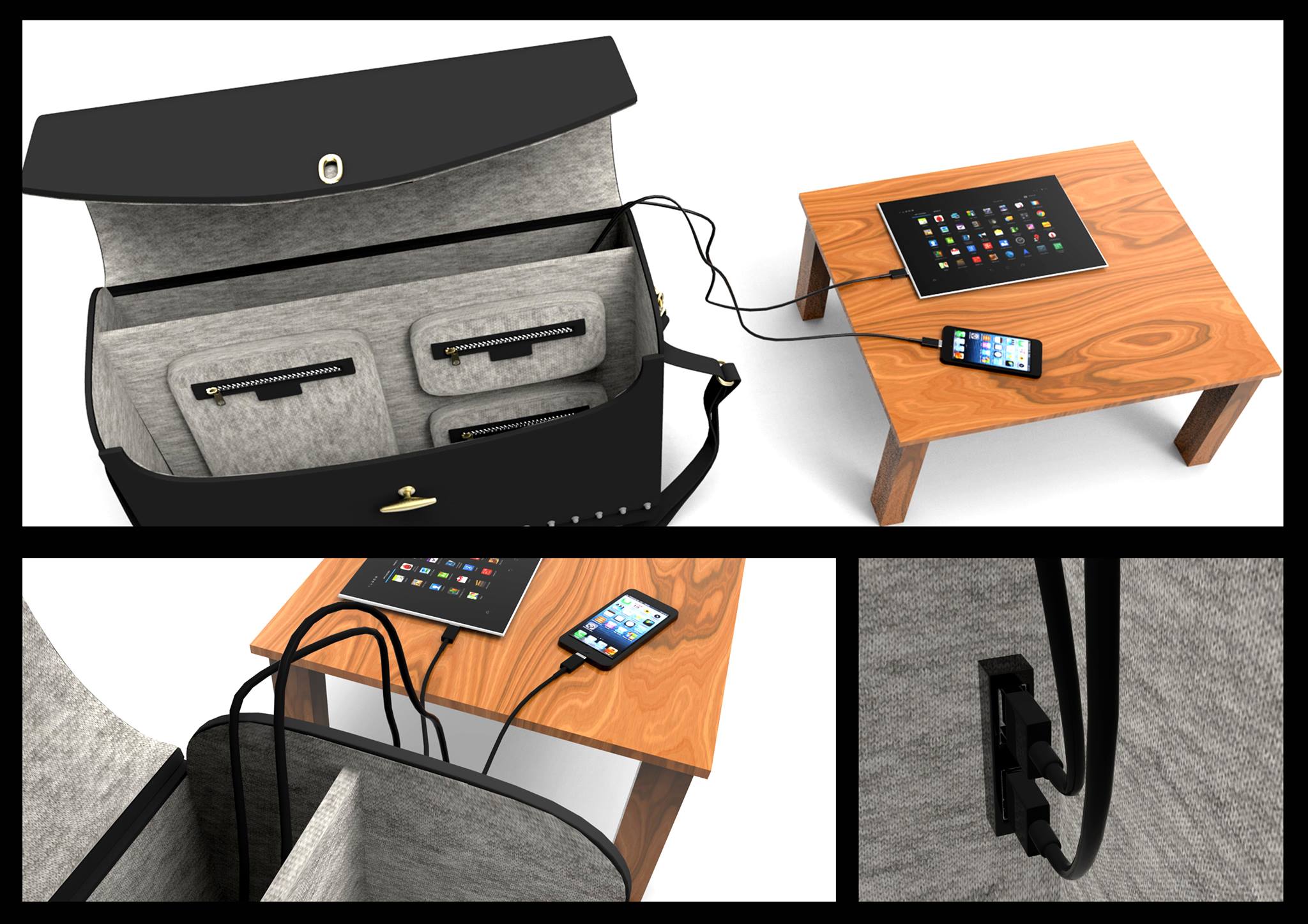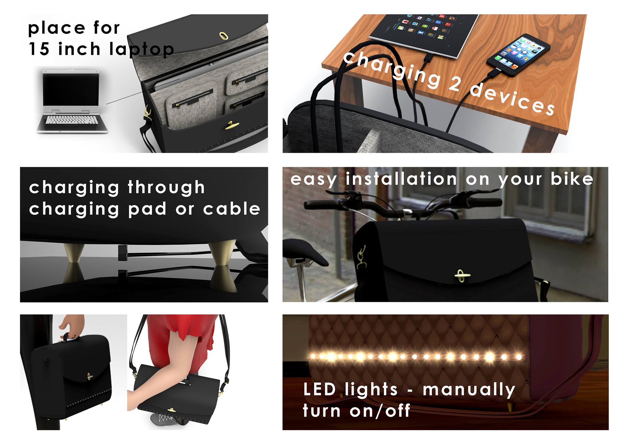 InSmart Bag isso é večnamenska torba slovenske izdelave, ki sledi duhu časa. Nima namreč zgolj posebnega prostora za udobno in varno prenašanje prenosnika, tablic in pametnih telefonov, temveč tudi poskrbi, da ti nikoli niso ”lačni”, saj je opremljena z baterijo za polnjenje prenosnih naprav.