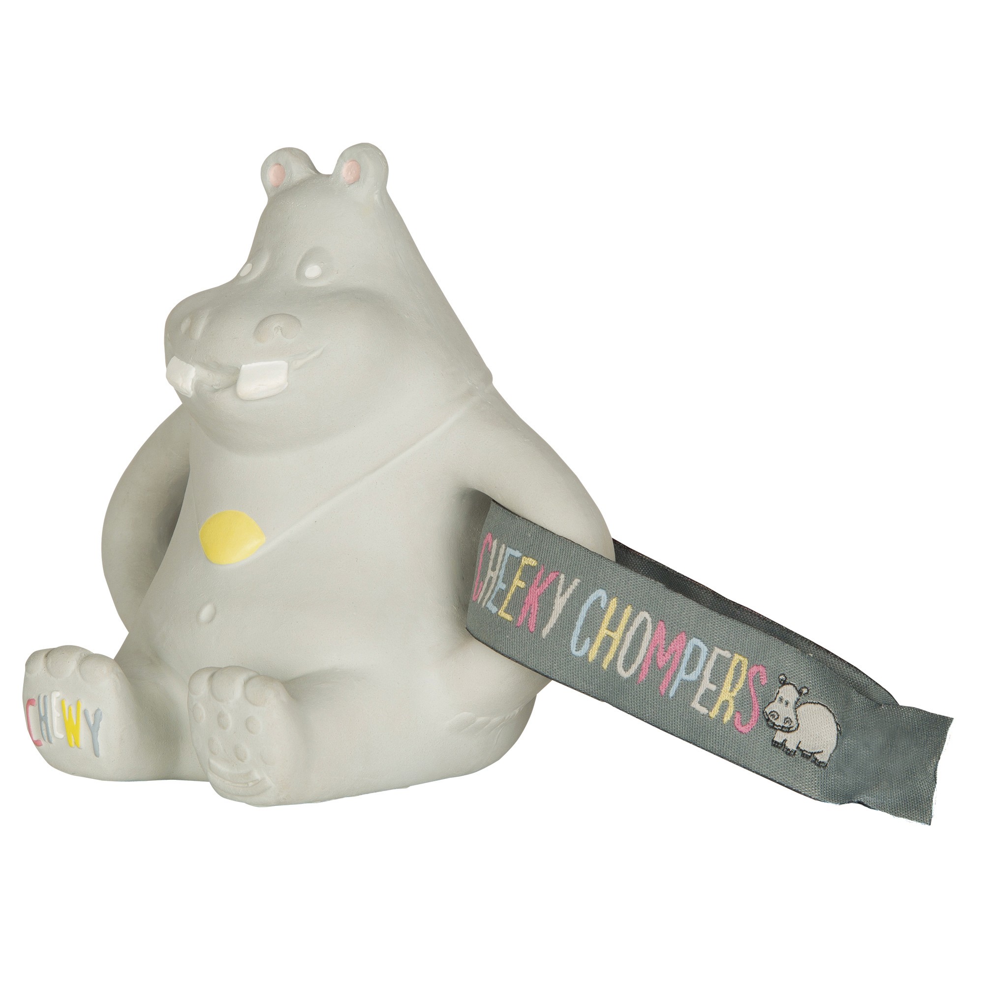 Hipopótamo em borracha é um brinquedo macio e mastigável com uma textura macia e muitas peças para caber para mastigar, criado para aliviar desconforto e dor durante a dentição. O adorável Hipopótamo estimula todos os sentidos e é trabalhado feito de borracha macia, natural e 100%, seu formato, diferentes texturas e padrões incentivam o pequeno a brincar. Devido à borracha natural, possui um aspecto agradável e aroma calmante, ao pressionar uma nota, o que auxilia no desenvolvimento da audição e ao mesmo tempo pode deixar a criança de bom humor.