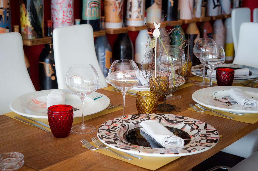Eles também vão bem com boa comida excelentes vinhos. A coleção de vinhos é composta por produtores locais, de Brda a Karst e Collio na Itália. Especial ênfase é dada aos vinhos de laranja. A anfitriã Nejka, que é sommelier, terá todo o prazer em aconselhá-lo sobre o vinho certo para combinar com a comida ou para saborear num copo no terraço.