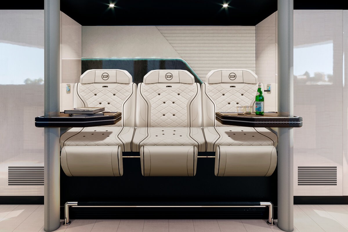 Um interior bem equipado espera por você lounge e bar/ cozinha com vista para o iate "beach club", equipado com divisórias dobráveis e portas de vidro deslizantes que podem expor os hóspedes aos raios solares ou protegê-los das rajadas de vento. Na parte inferior você encontrará quatro cabines de hóspedes e um luxuoso quarto principal, complementado por requintados ônix e móveis da coleção Bentley Home.