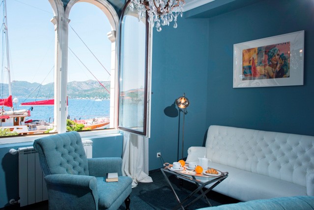 Korčula De La Ville Hotel je v svojem času gostil pripadnike svetovne elite, med katerimi so bili tudi Jackie Kennedy, Tito e Sophia Loren. Nekoč najbolj popularen hotel na otoku se je vrnil s polnim zanosom, saj njegova prenovljena podoba nakazuje ponovno prebujenje luksuznega hotelskega bivanja, ki so ga poznali v tridesetih letih prejšnjega stoletja. Hotel razpolaga z dvanajstimi luksuzno opremljenimi sobami in osmimi prostornimi apartmaji, od katerih sta dva dvoetažna. Notranjost prostorov je opremljena s stilskim pohištvom, razkošnimi lestenci, bogatim dekorjem in pariškimi stenskimi tapetami. Barvna paleta, ki prevladuje v sobah sestoji iz odtenkov modre, sive in bele, skupni prostori pa pomirjajo v barvi sivke. Sodoben hotel s pridihom luksuzne preteklosti ponuja intimno atmosfero in popoln prostor za brezskrbno uživanje.