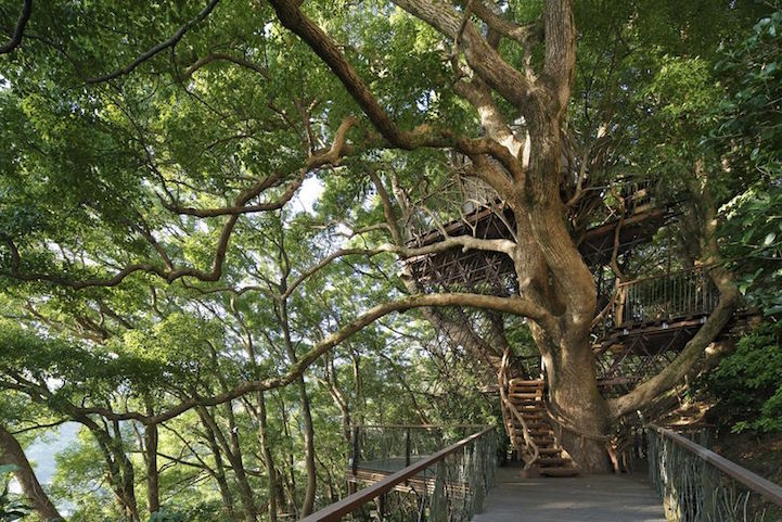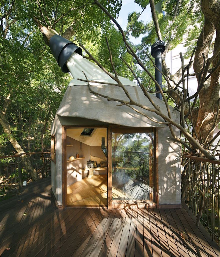 Kusukusu isso é casa na árvore, que reuniu ramos para sua "fundação". Uma árvore de cânfora de 300 anos do Leste Asiático. A residência não é apenas uma realização arquitetônica (os autores são Takashi Kobayashie e Hiroshi Nakamura), mas também estética. Ao contrário de outras casas deste tipo, trata-se de uma estrutura de ferro independente que não toca a árvore de forma alguma, que pode crescer pacificamente mais longe do que imaginava. Assim, não só os arquitetos ficam satisfeitos, mas também botânicos.
