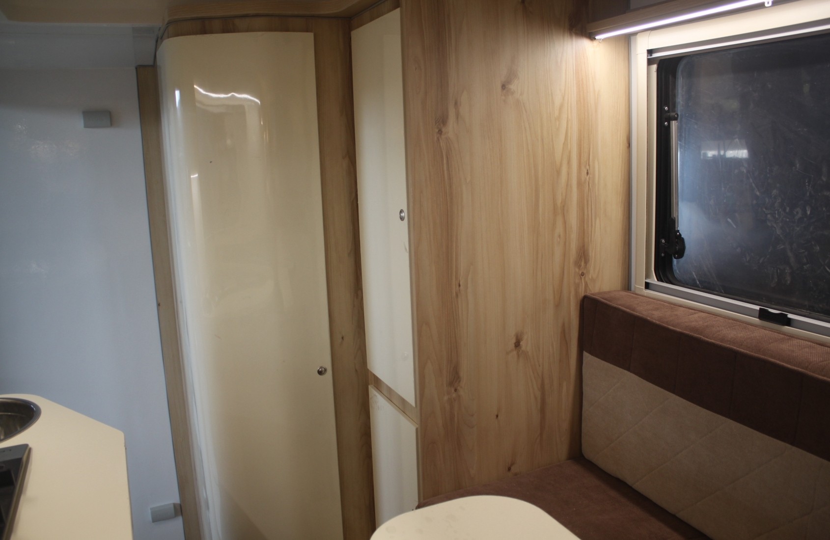 Notranjost ponuja nekaj prostora za shranjevanje, kuhinjo s pomivalnim koritom, štedilnik z enim gorilnikom ter kopalnico s tuš kabino, umivalnikom in straniščem. Svežo vodo shranimo v ogrevan shranjevalnik s kapaciteto 70 litros, za odpadno vodo pa nam je razpolago še posoda s 45 litri prostornine. Predelava je že opremljena z vso potrebno eletricamente napeljavo, kot tudi napeljavo za jeklenko propana, s katero se lahko ogrevamo in kuhamo.