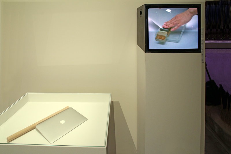 Shimabuku é afiado com uma pedra de amolar MacBook Air diluída a tal espessura que ele poderia cortar uma maçã ao meio com ela. Muito significativo, certo? Para deixar tudo ainda mais convincente, o artista utilizou um cabo de madeira no qual prendeu a 'lâmina', de modo que o aspecto final ficou bastante parecido com um machado. Shimabuku quis mostrar uma comparação entre ferramentas antigas e modernas, pois sempre foi movido pela curiosidade em investigar os hábitos humanos. Afinal, praticamente desde os primeiros dias de existência, o homem utiliza um método de corte muito semelhante ao que conhecemos hoje. Apenas as ferramentas mudaram um pouco. O evento ou a instalação foi transmitida na bienal por vídeo, e não ao vivo.