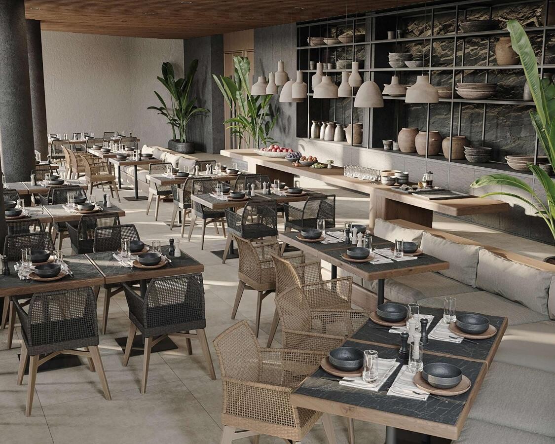 O resort também inclui dois restaurantes e um bar, localizados ao lado de uma das maiores piscinas infinitas de Santorini. Os hóspedes podem jantar no interior e assistir ao Chef Executivo Thanos Giannakos e sua equipe prepararem um banquete, ou optar por um jantar relaxante à luz de velas sob as estrelas.