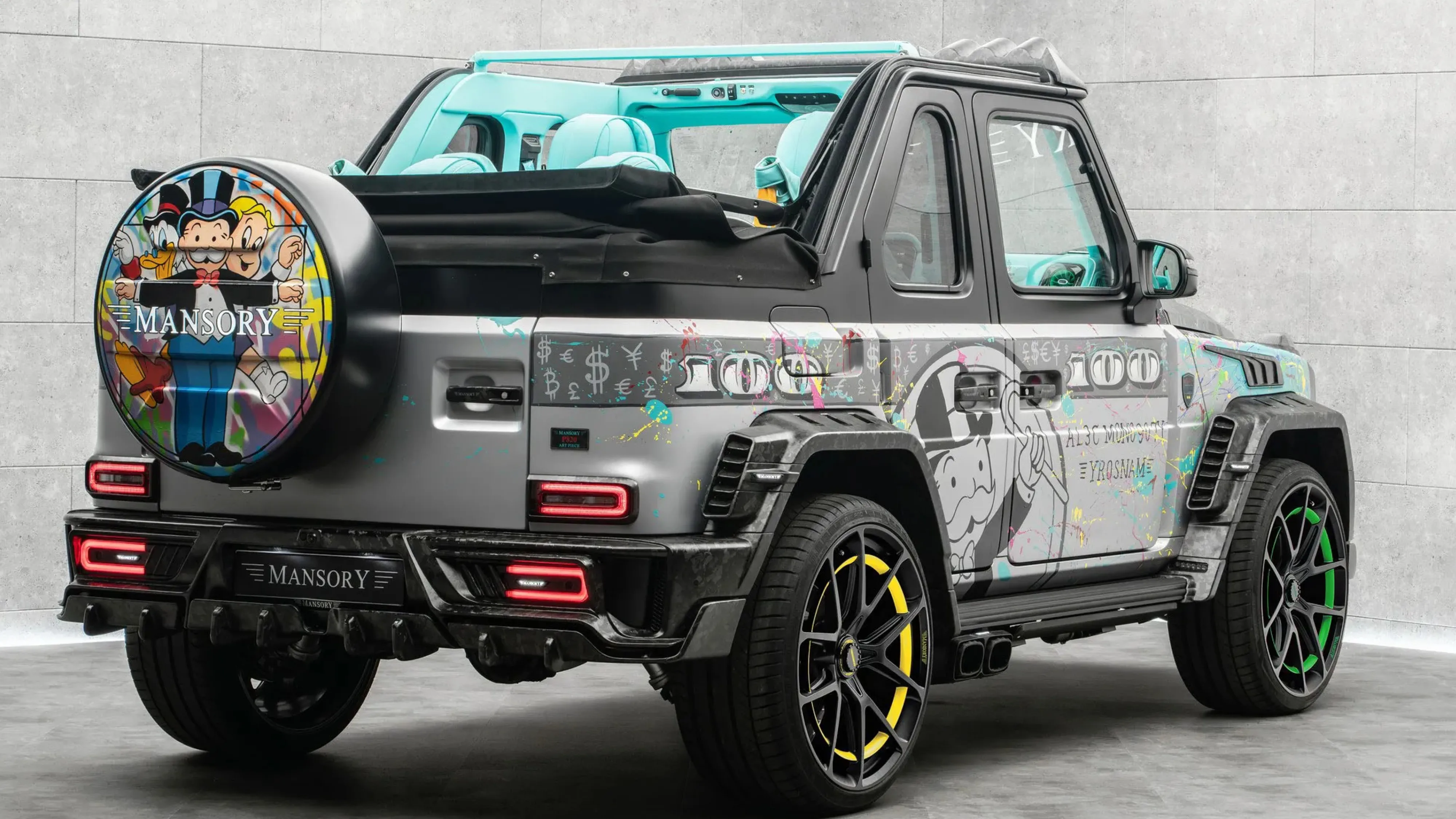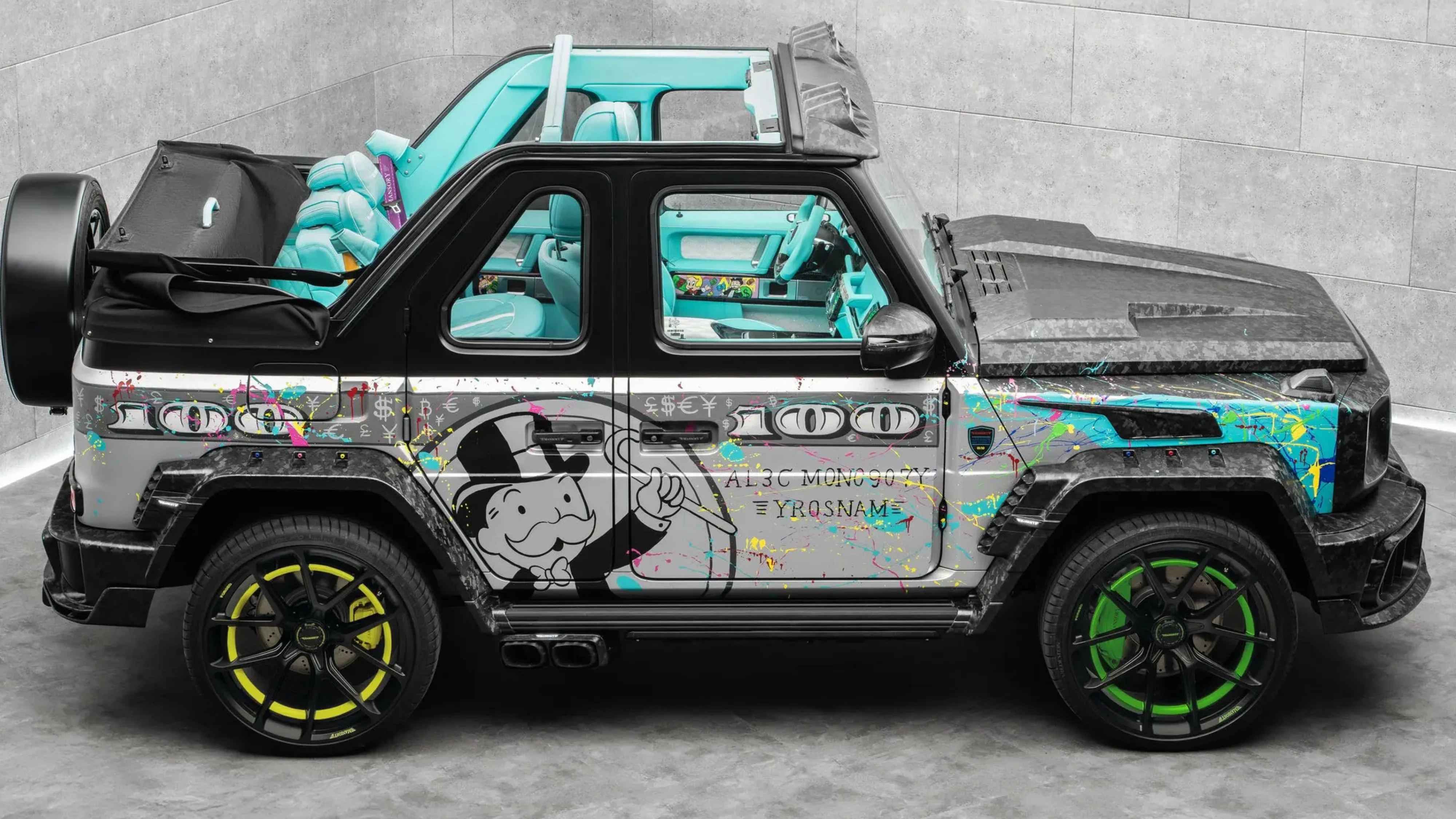 Mansory, especialista alemã na transformação dos veículos de luxo mais potentes, é conhecida por seus kits de carroceria arrojados, abundantes elementos de carbono e interiores coloridos. Sua mais recente criação, chamada AL3C MONO907Y, supera todos os limites anteriores de extravagância. Em colaboração com o artista pop Alec Monopoly, foram criados dez Classe G totalmente pintados à mão, cada um deles um verdadeiro exemplar "único" – Mansory x Alec Monopoly. Cenas de Monopoly com o personagem central, o homenzinho rico do antigo jogo de tabuleiro Monopoly, através de explosões de cores em tons vibrantes – turquesa, rosa, amarelo, azul, verde e vermelho – são dispostas nos painéis laterais, nas portas traseiras e até mesmo no suporte para o estepe, que combina os personagens Tio Patinhas e Riquinho.
