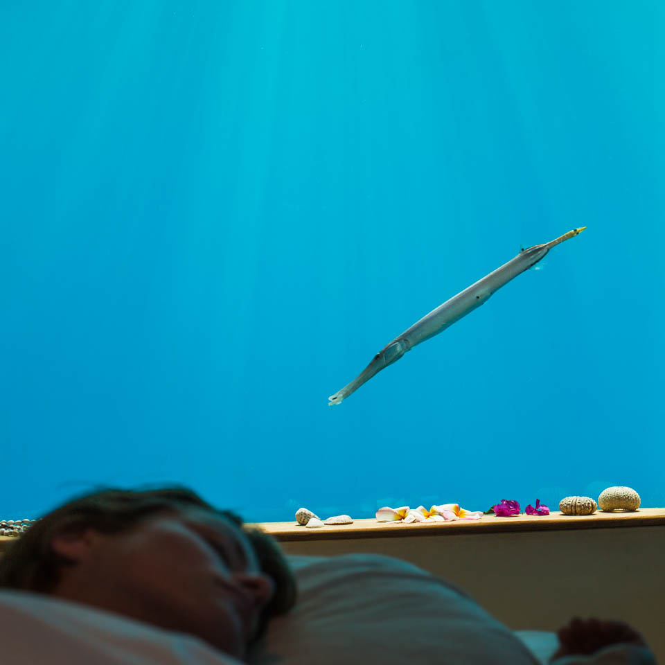 Švedska hotelirska veriga Genberg Undewater Hotels je ustvarila popolno idilo – all-inclusive hišico sredi oceana, ki v spodnjem delu sega kar 4 metre pod morsko gladino. Sestavljena je iz treh nivojev – strešne terase za nastavljanje sončnim žarkom in opazovanju neštetih zvezd, palube za poležavanje in okušanje tropskih dobrotah ter podvodne sobe, obkrožene s stekleno 360 stopinjsko morsko panoramo. Predstavljajte si, medtem ko poležavate v brezskrbnem udobju, vas neposredno obkrožajo turkizno morje, tropsko življenje in živobarvni koralni greben. Ponoči pa podvodni žarometi privabljajo tudi raznovrstnost surrealnih morskih bitij, ki bodo plavali čisto blizu vas.