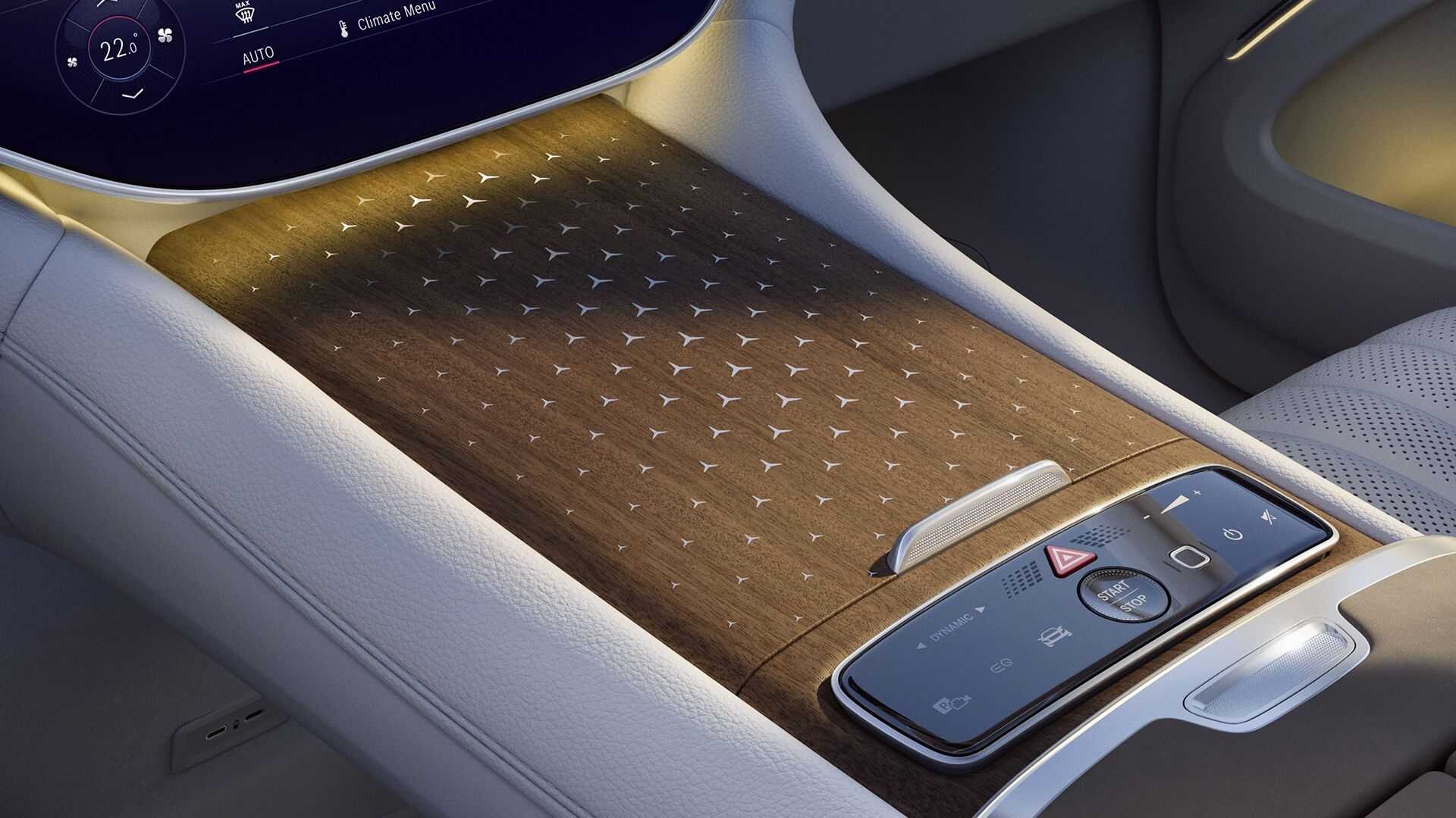 O interior é muito semelhante ao que encontramos nos modelos EQS e EQE. A parte mais interessante do compartimento do motorista é definitivamente a chamada tela MBUX hipertela, que é feito de uma única peça de vidro altamente resistente. Eles estão unidos nele 17,7 polegadas tela central OLED, 12,3 polegadas o visor de instrumentos do motorista e 12,3 polegadas tela sensível ao toque, que é colocada na frente do passageiro. Através dele, o passageiro pode gerenciar as sugestões na navegação ou escolher suas fontes musicais.