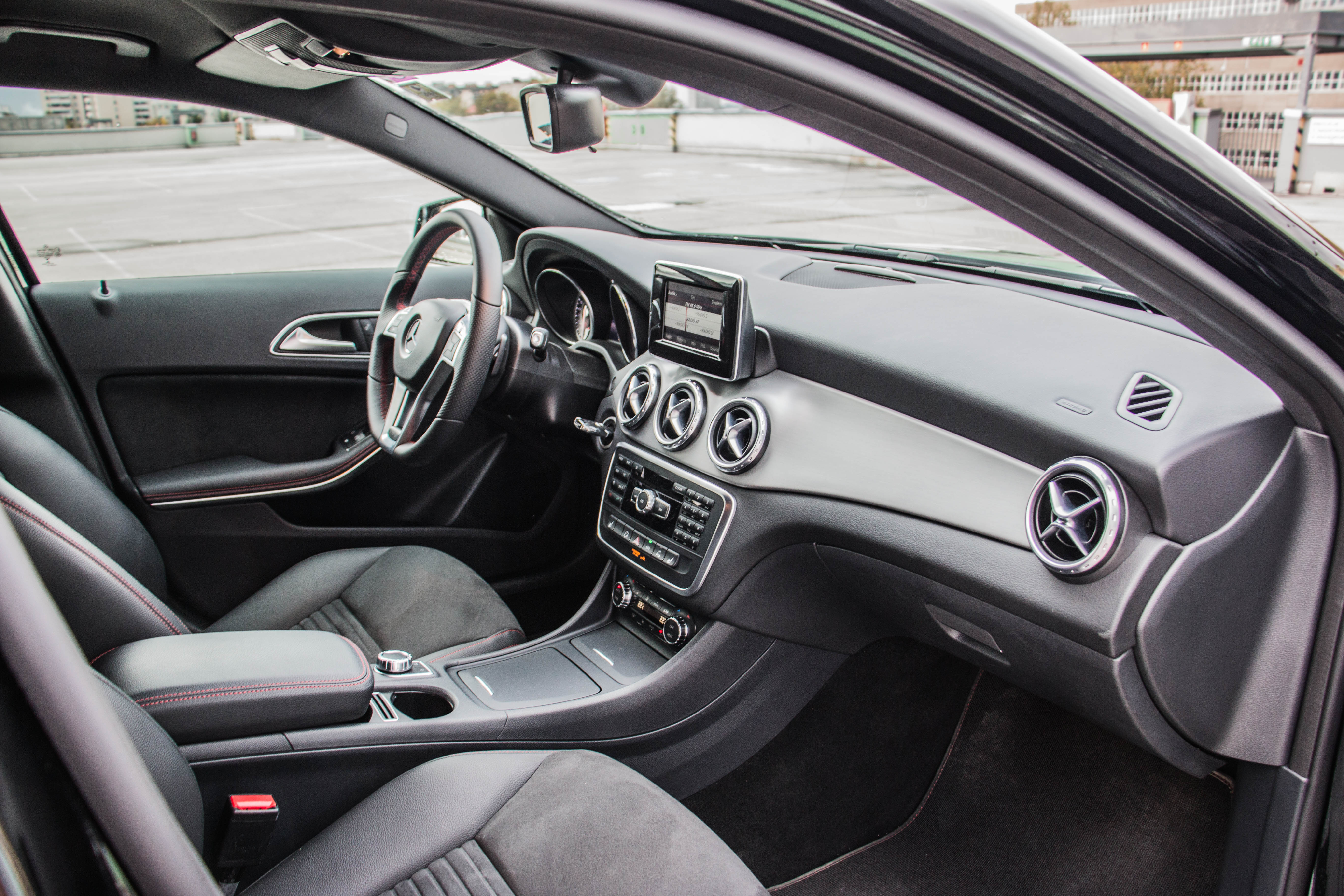 S svojima bratoma mercedesom A e CLA si deli večino komponent v notranjosti, kar vsekakor ni slabo, saj je le ta mladostno navdihnjena in zanimiva v svoji dinamični oblikovni svobodi. Od razreda A je daljši za približno 12 centímetros, kar avtomatično pomeni tudi boljše občutke v notranjosti in večji volumen prtljažnega prostora, ki znaša 421 litrov, kar je skoraj 80 litros več kot v mercedesu A.
