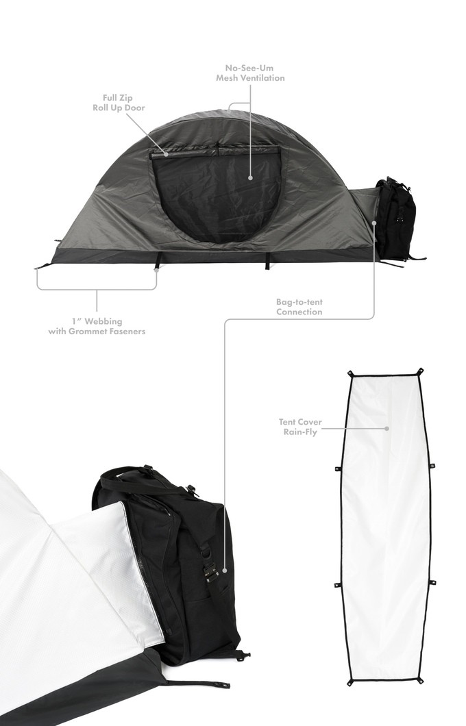 Moedal (julgue você mesmo qual é a cara metade) é a mochila da marca provisório, enquanto é Totem deles tenda de três estações para uma pessoa criado apenas para a referida mochila. Isso o mantém sob o zíper nas costas e é montado em apenas 30 segundos (as varas já estão dispostas dentro da barraca, o que elimina a configuração desajeitada a que estamos acostumados). Uma vez em pé, você pode ir durante a sua estadia separado, para manter o resto do seu equipamento com você enquanto explora a área circundante. Se você não desligá-lo, você pode o conteúdo da mochila também pode ser acessado de dentro da barraca.