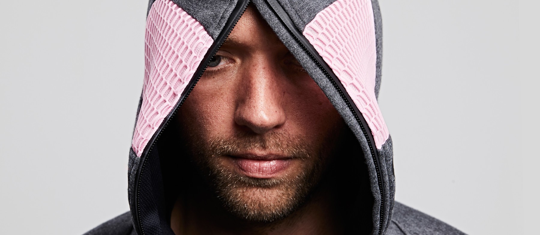 O moletom com capuz de relaxamento é como tanque isolante, que você leva para onde quer que vá. Sem tecnologia e sem esforço especial simplesmente feche o zíper, incluindo a cabeça, e desconecte-se de tudo. O que torna esta jaqueta especial é viseira rosa (círculo rosa ao redor dos olhos) que reproduz a cor para que a visão diante de seus olhos fique rosa.