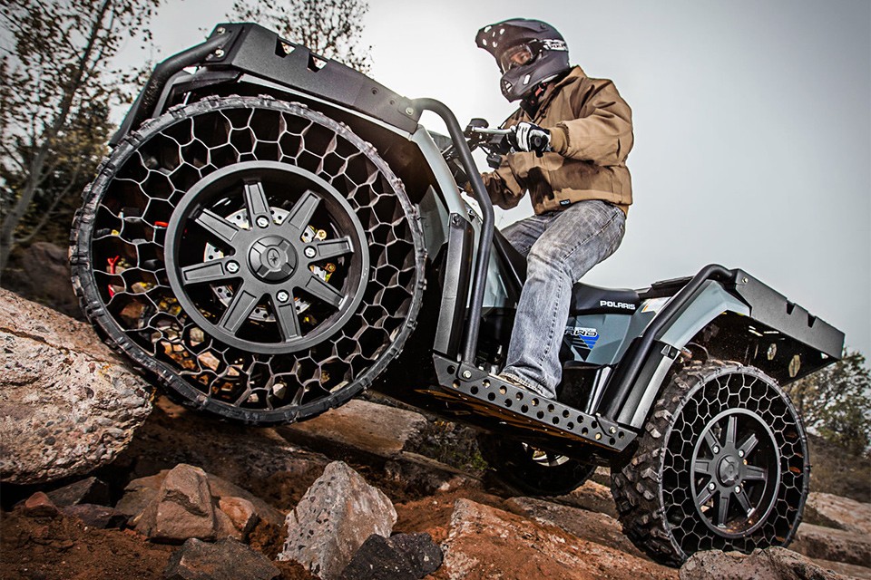 A empresa americana Polaris apresentou o indestrutível veículo de quatro rodas "Polaris Sportsman WV850". Esta fera de 850 cc aguenta até os terrenos mais exigentes, principalmente devido à tecnologia especial de pneus sem ar chamada NPT (Non-Pneumatic Tire).
