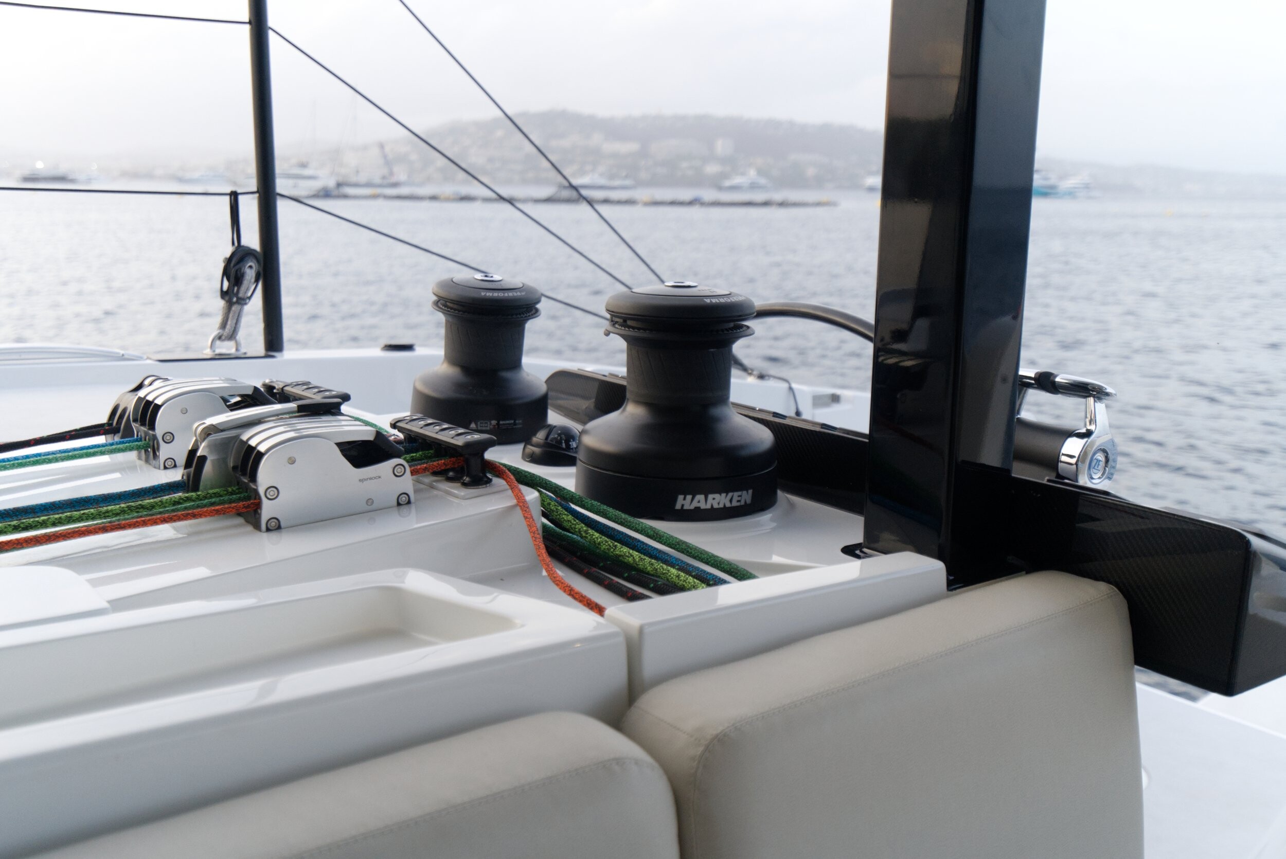 Com os seus postos de comando giratórios para melhor visibilidade e conforto em todas as condições meteorológicas, e fácil acesso aos salões e ao cockpit, este catamarã foi concebido para uma navegação confortável e segura. Suas linhas são limpas, pois todas as linhas de vela são direcionadas abaixo do convés, o que permite a movimentação desimpedida ao redor do catamarã. Cabeços altos e uma grade contínua ao longo da borda do convés contribuem ainda mais para a segurança a bordo.
