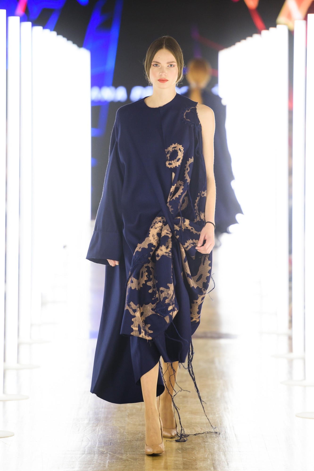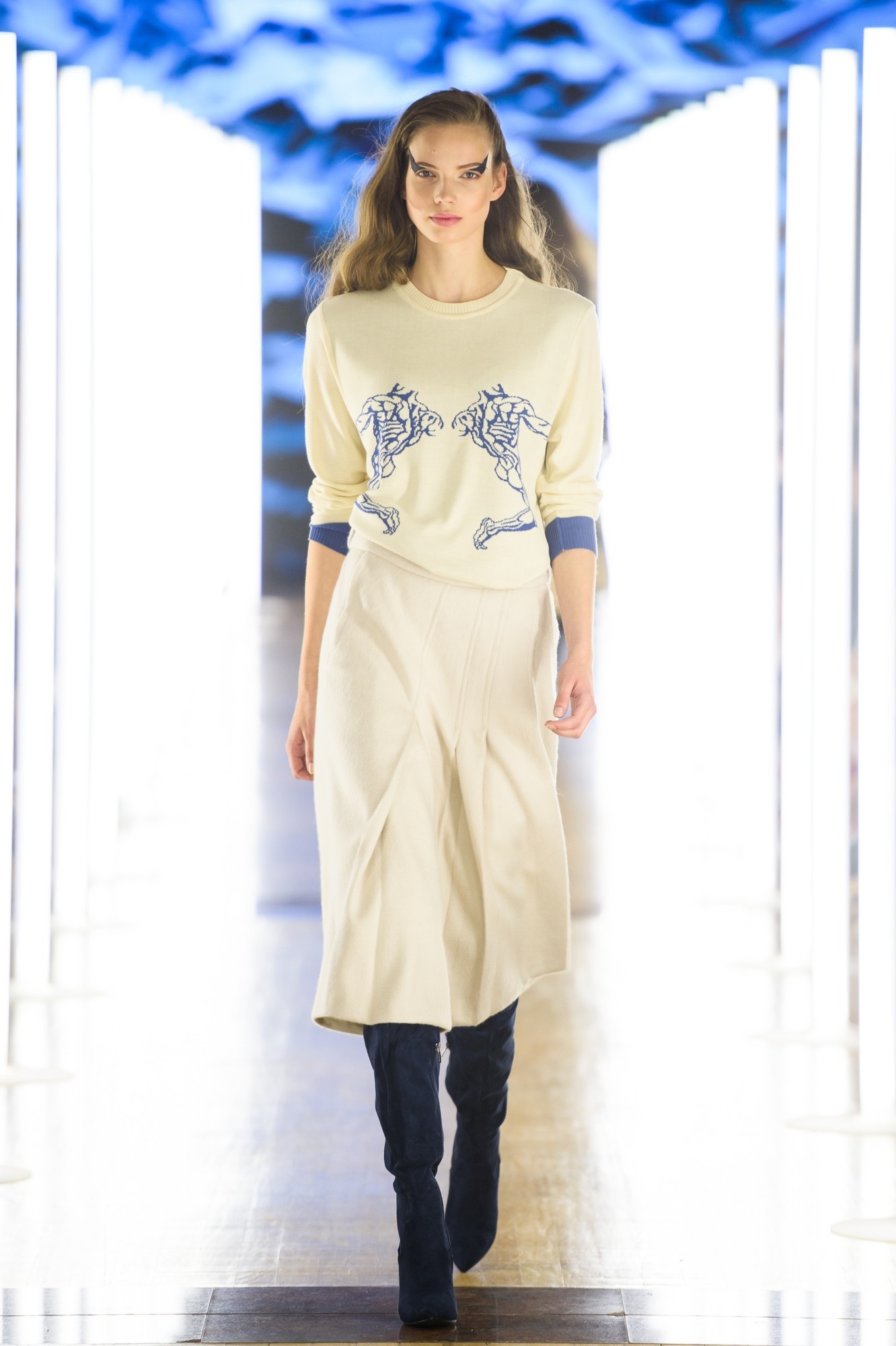 A coleção baseia-se em dois pressupostos: a forma do corpo e a fisicalidade da peça. Foi criada com base em formas e contornos, perfeccionismo e proporções que acompanham o corpo em diversas poses e convulsões. A pesquisa foi transferida do meio tridimensional, escultural e esboçado, para o meio têxtil e de tricô. O resultado são formas purificadas, cuidadosamente compostas por linhas, e uma visualização clara – a forma do corpo na peça. A peça externa dá continuidade à interpretação linear da fisicalidade. As peças são construídas de forma que cada incisão seja deliberadamente colocada em um local que não deforme a forma básica da silhueta e preserve a fisicalidade. Há uma forte ênfase na funcionalidade das peças, que inclui materiais naturais e adequados ao corpo, e na paleta de cores, que se baseia em tonalidades para mais opções de combinação. Design do motivo: Tomislav Blažević.
