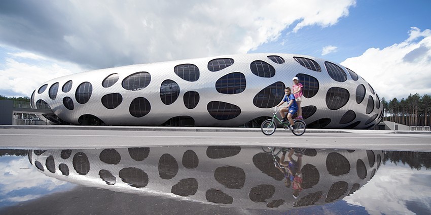 O gabinete esloveno Ofis arhitekti concluiu recentemente a construção de um novo estádio de futebol na cidade bielorrussa de Borisov. O edifício afunda-se na floresta circundante e é envolto numa interessante fachada metálica de formas orgânicas.