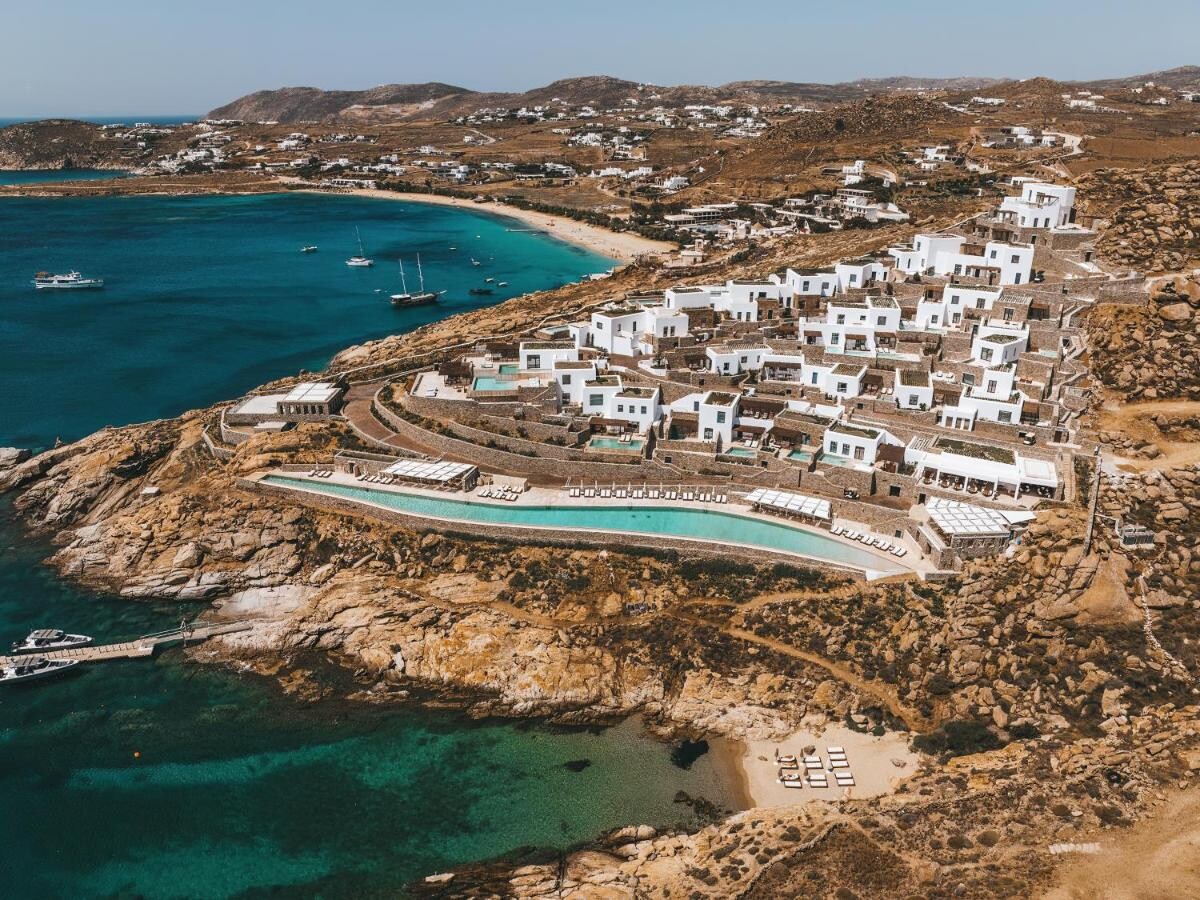 Cali Míconos, situado numa encosta com vista para o Mar Egeu, é um refúgio de luxo que combina a elegância moderna com a arquitetura tradicional grega. Este hotel boutique oferece suítes espaçosas com piscinas infinitas privativas e vistas deslumbrantes do mar. Os hóspedes podem relaxar no spa ou desfrutar de cozinha gourmet no restaurante do hotel.