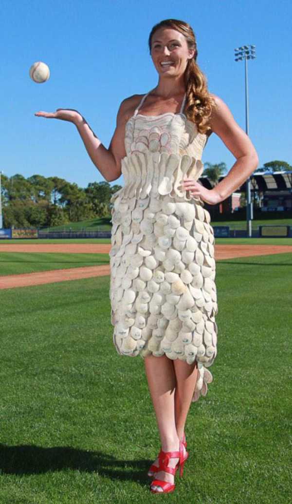 Vestido feminino feito com pontas de caneta-tinteiro: