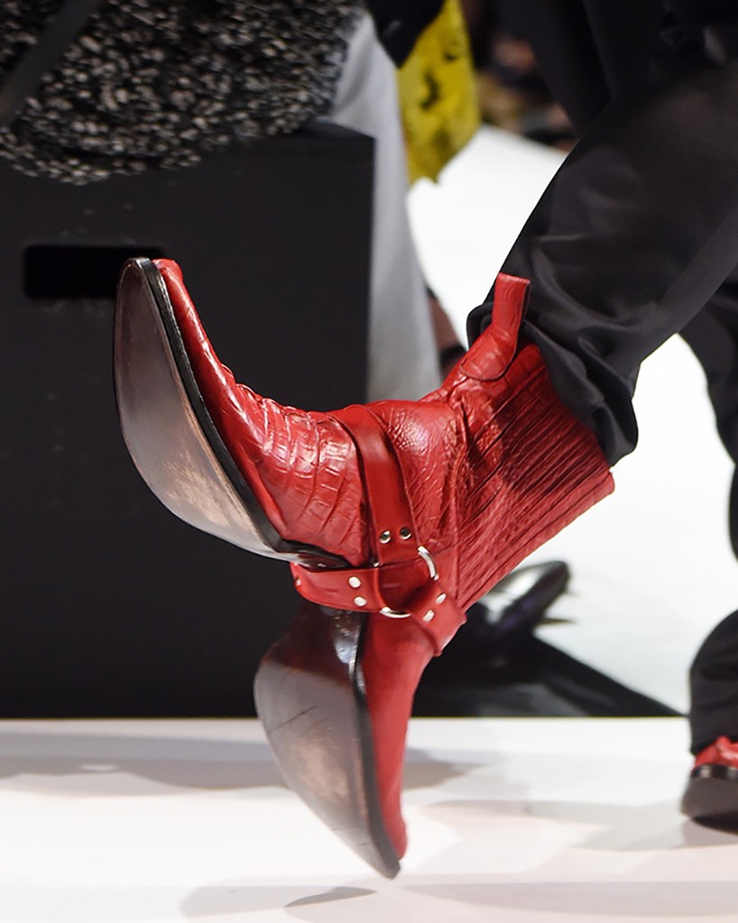 Tínhamos muito o que ver no desfile da Hood By Air na New York Fashion Week. Modelos desfilaram pela passarela usando botas de caubói incomuns. São dupla face, pois não possuem parte traseira, mas 'apenas' duas frontais. Já pensávamos que botas de cowboy convertidas em sandálias era uma ideia bizarra.