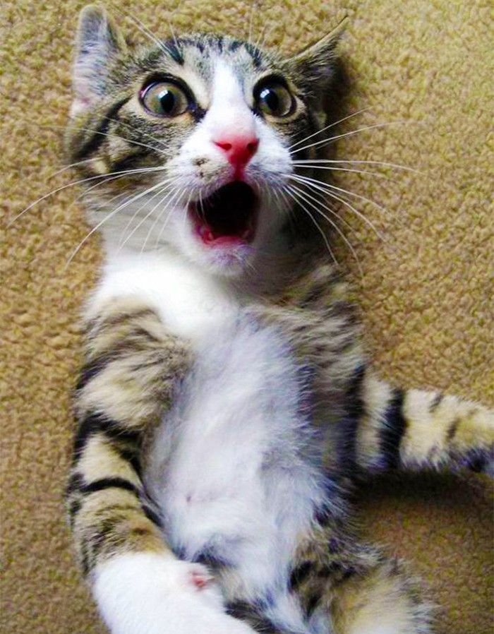 Težko je reči, kaj je te začudene živali tako zelo šokiralo, vsekakor pa so njihovi izrazi neprecenljivi. Upamo lahko le, da jim videno ni povzročilo kakšnih travm. Sicer pa, saj poznate zgodbo o OMG Cat, ko so ljudje fotografijo mačke Chocolate s spahnjene čeljustjo zamenjali za stanje šoka. Lastnica se je z njo na internet obrnila po pomoč, saj so bile vse živalske klinike tisti večer že zaprte.