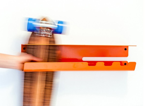 O fato é que os skates e sua mutação, os longboards, que se diferenciam dos clássicos pelo tamanho (mais comprido), formato (mais pontiagudo) e rodas, não são exatamente gentis. Mas ambos, e especialmente os escaleres, são muitas vezes verdadeiras obras de arte, por isso não merecem ser deixados onde caem das nossas mãos após o fim da utilização. Por isso, na Zanocchi & Starke prepararam a prateleira Wall Ride, onde você pode pendurá-la e exibi-la com orgulho.