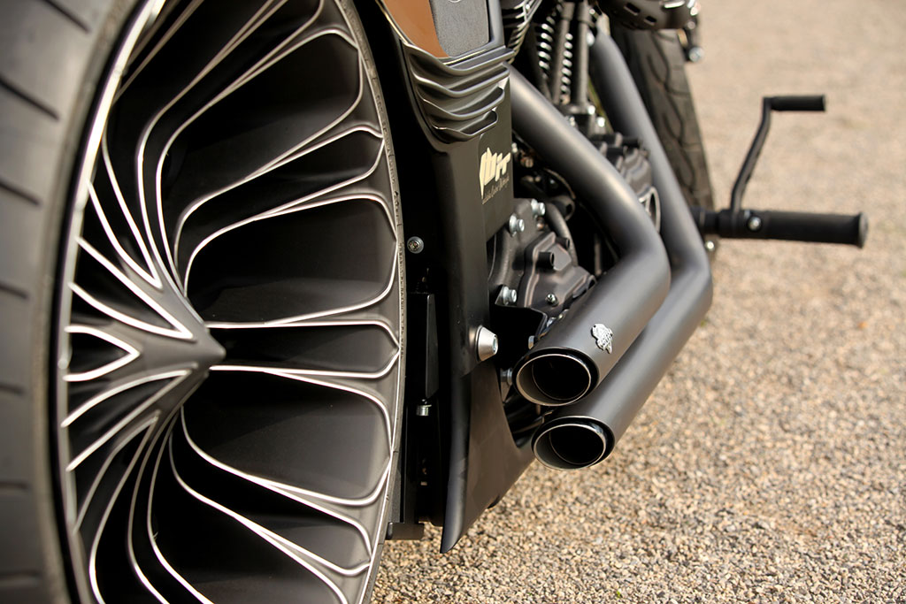 O Production-R não é único apenas no nome, mas também em suas rodas. O mais recente, de 21 polegadas, foi criado em colaboração com Pirelli (feito sob medida- 260/35/21), e a frente tem 26 polegadas. A motocicleta não será vendida como um produto produzido em massa, mas será montada para você. personalizado.