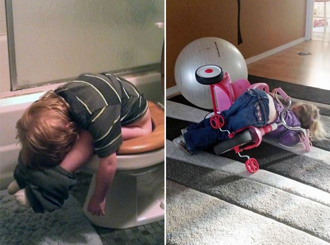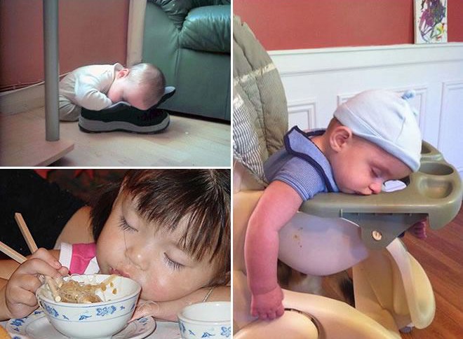 A culpa é de uma noite curta, de uma viagem longa ou de uma combinação de outras circunstâncias. O garoto não se importa. Eles eles podem adormecer em qualquer lugar e a qualquer hora. Mesmo que estejam fazendo cocô ou xixi, almoçando, assistindo TV ou subindo escadas. Quando eles ligam da terra de Nija, você tem que ir.