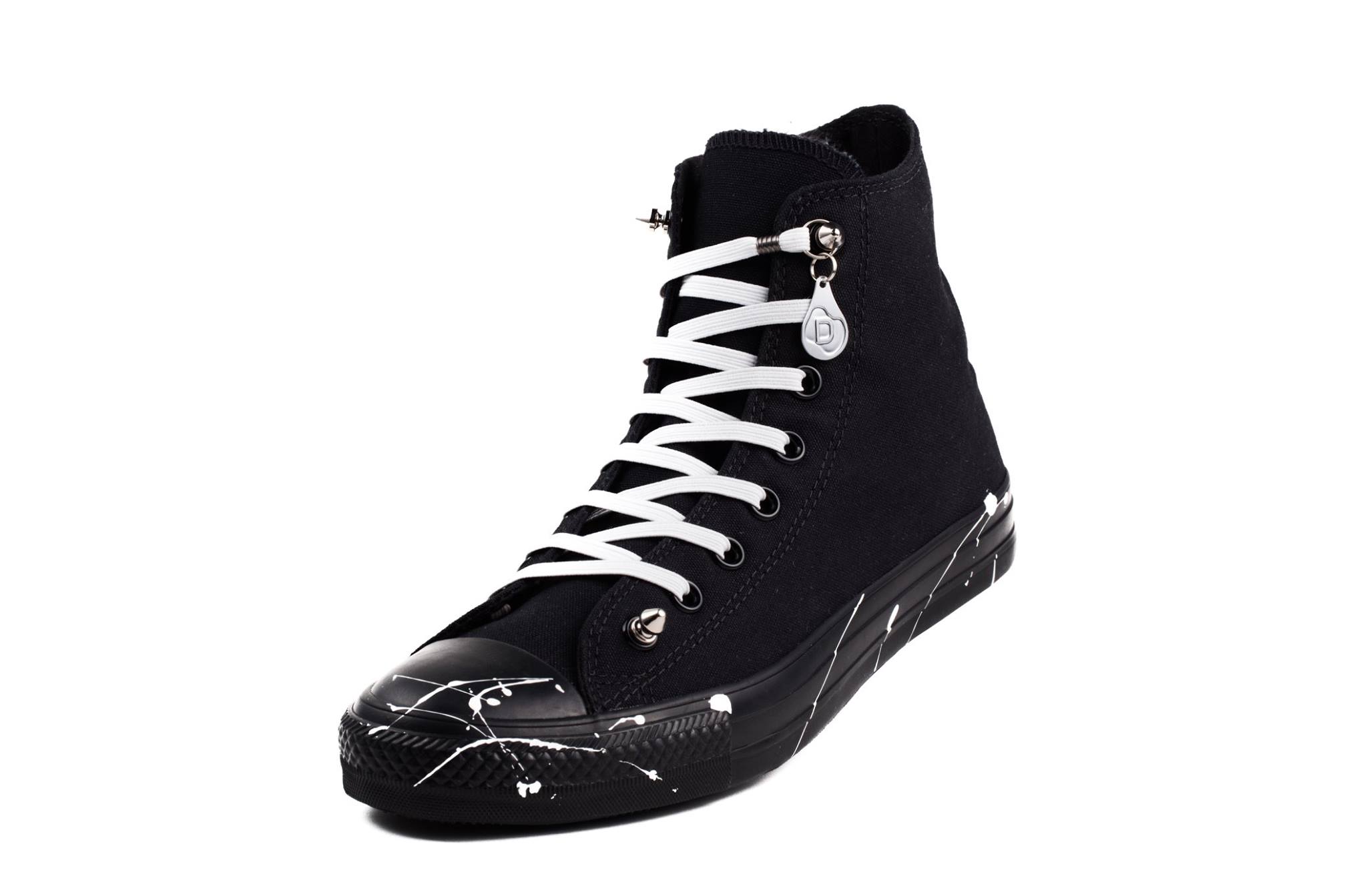 Cadarço rápido eles são cadarços elásticos com anel e pinos rosqueados que se encaixam nos dois últimos furos dos cadarços. Em vez de amarrar e fazendo um laço, basta apertar e prender os cadarços colocando o anel rebite (Isso funciona como um acessório de moda e pode ser substituído). Cadarços inovadores não são apenas práticos, mas também um acessório de moda adequado para todas as ocasiões e todos os tipos de sapatos.