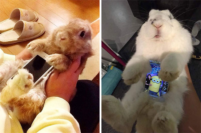 Não se preocupe, coelhos eles não são recheados, que você deve ter pensado em primeiro lugar. A realidade é bem menos cruel. Ela é absolutamente adorável. Como os japoneses descobriram, tem coelhinhos que muita gente tem por animais de estimação, a capa perfeita para smartphone e muitas fotos provam isso.