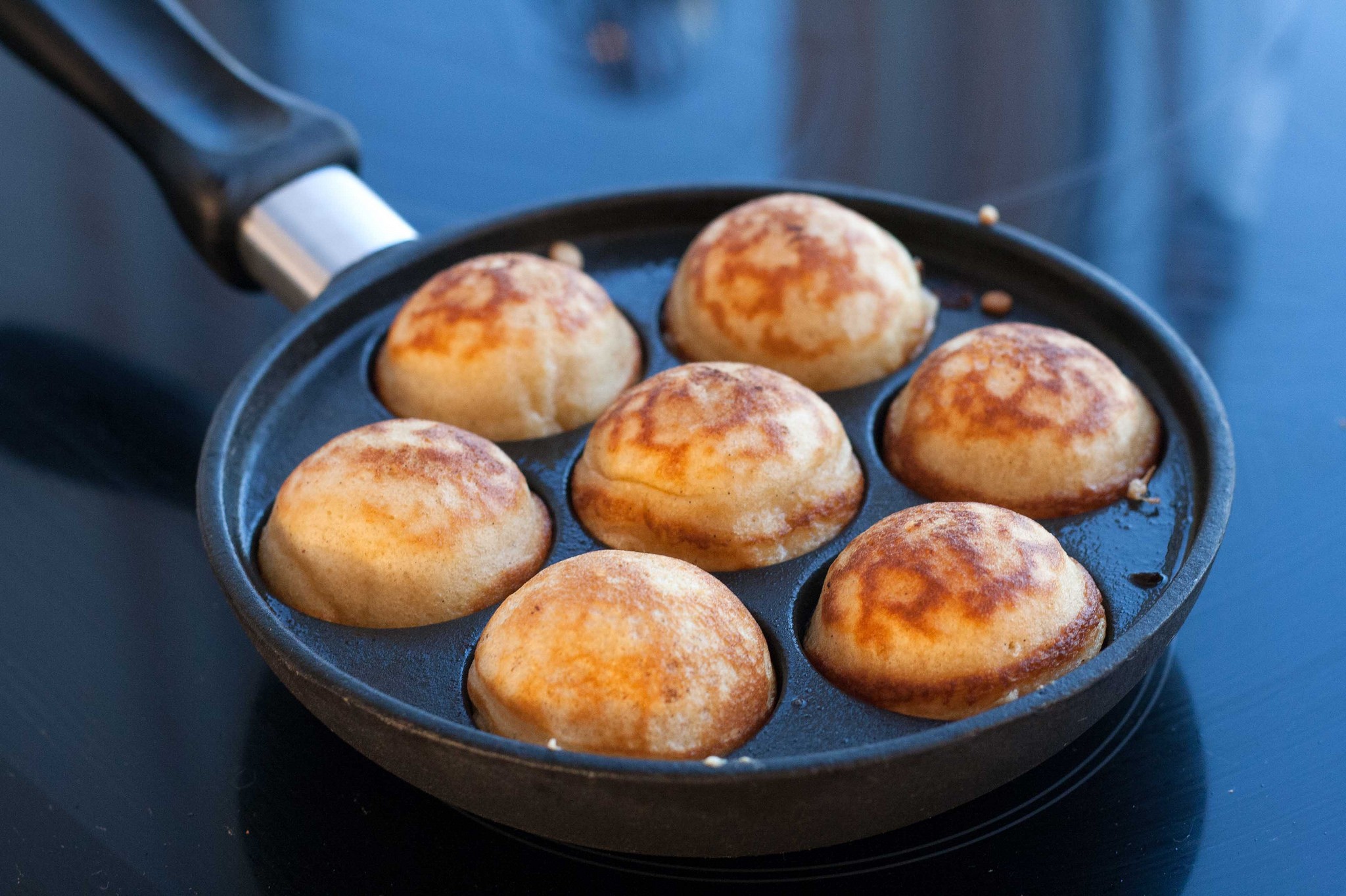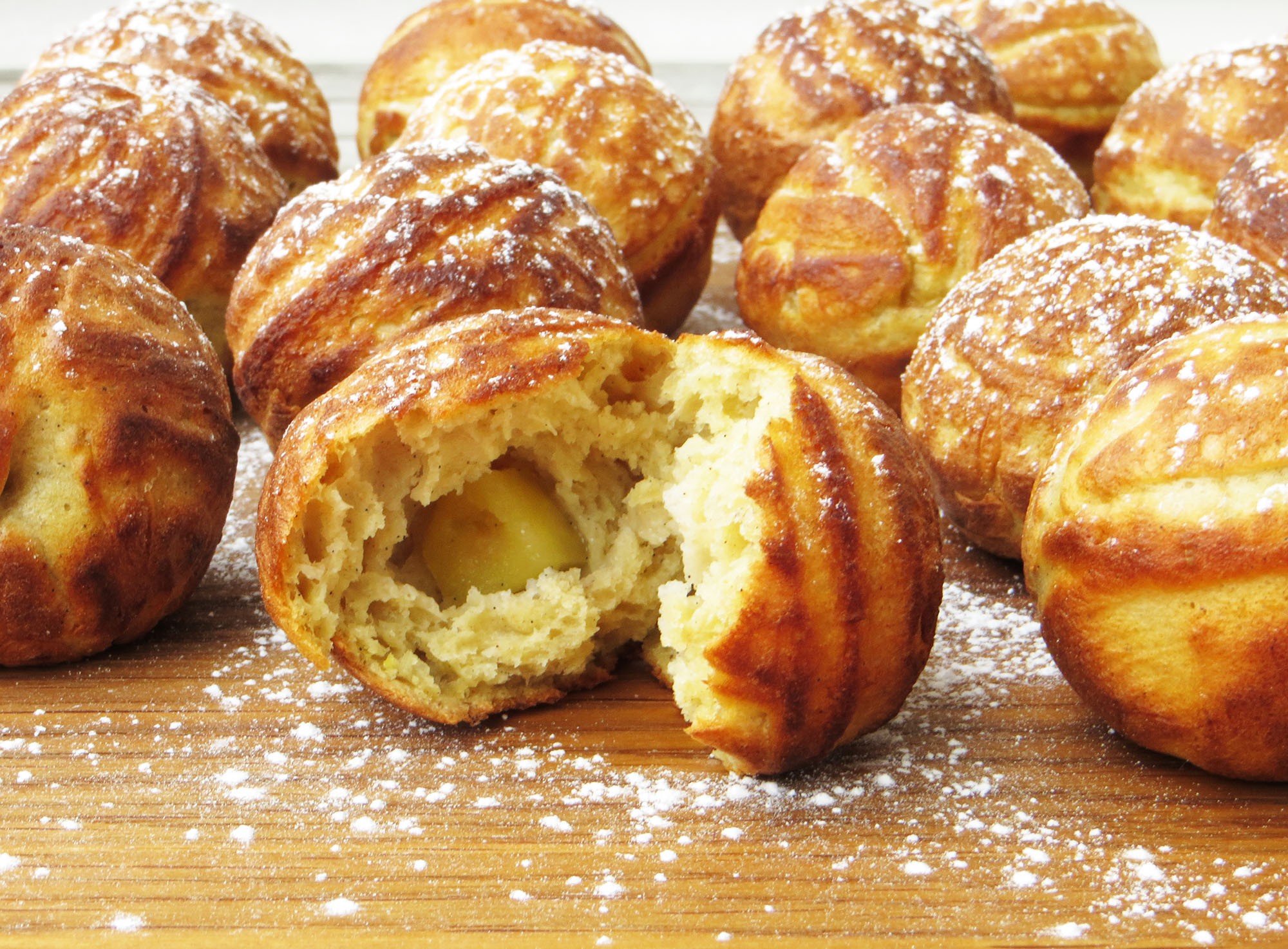 Bolsinhos de panqueca com Nutella são feitas de acordo com a receita tradicional de panquecas dinamarquesas, que são originalmente chamadas æbleskiver (boa sorte com a pronúncia!).