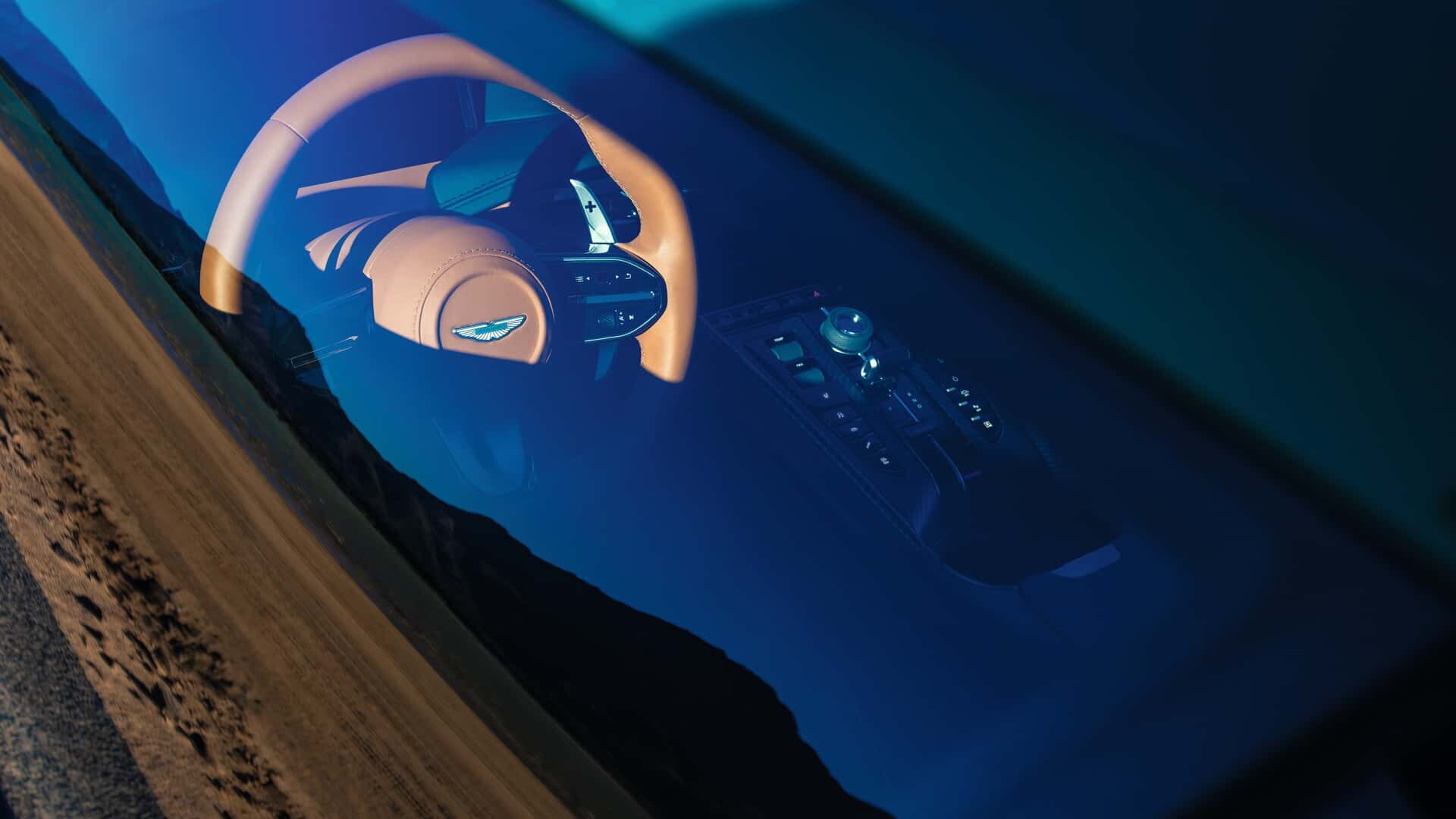 Um dos destaques do interior – além do enorme console central do motorista e do mais fino couro Alcantara – é o novo sistema de infoentretenimento, totalmente projetado e desenvolvido internamente pela Aston Martin. Ele suporta conectividade sem fio com Apple Car Play e Android Auto, um novo sistema de navegação com conectividade online e mapeamento 3D, um aplicativo móvel e atualizações over-the-air.