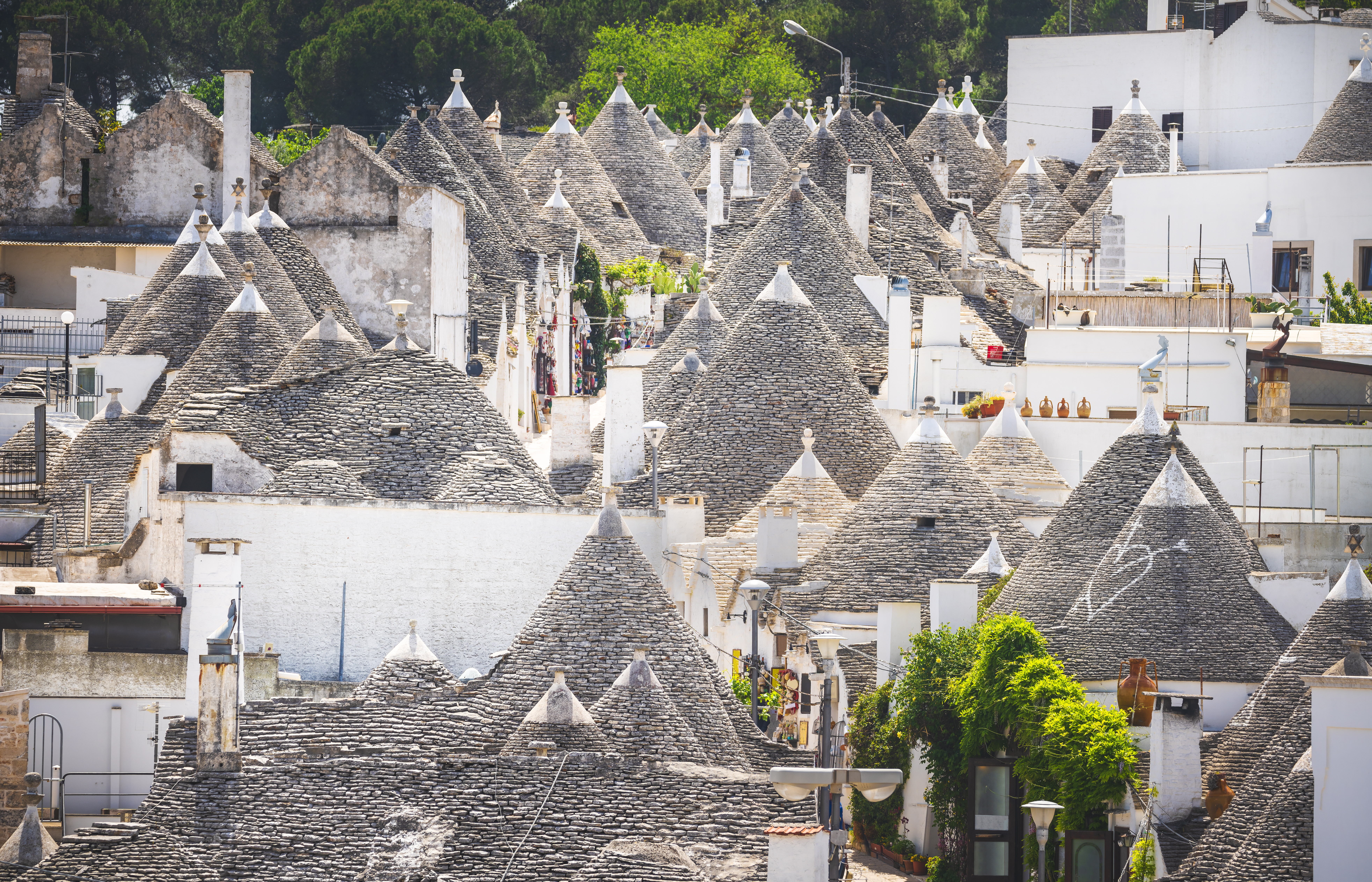Um Patrimônio Mundial da UNESCO, Alberobello é um destino de visita obrigatória com suas casas trulli exclusivas com telhados cônicos e paredes caiadas de branco. Explore os bairros de Rione Monti e Aia Piccola para descobrir essas maravilhas arquitetônicas e jantar no L'Aratro, que serve a requintada culinária local em um charmoso cenário trullo.