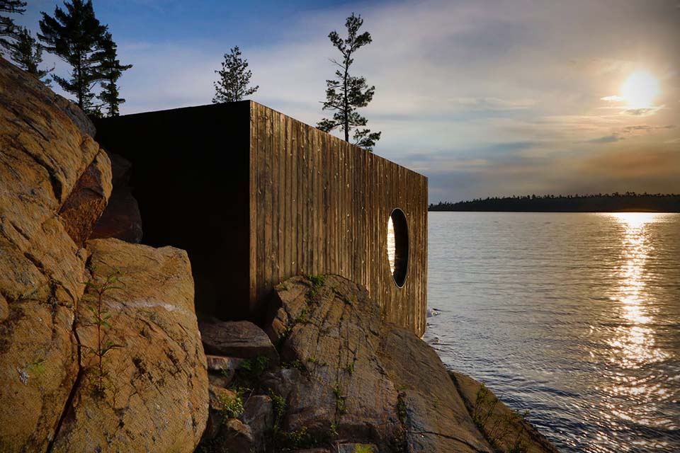 O projeto foi concebido por arquitetos canadenses Escritório de arquitetura Partisans Foi um grande desafio, pois o cliente desejava uma experiência relaxante em um pequeno lago no norte de Toronto. Em uma enorme área de pedra, os arquitetos construíram uma pequena sauna Grotto, que é certamente uma das saunas mais atraentes em um ambiente natural. A sauna Grotto é feita de madeira de cedro, resistente a influências externas e com um aroma agradável característico. A sauna possui dois grandes aquecedores que controlam a quantidade de calor, enquanto ventiladores e pequenas aberturas permitem a ventilação do ambiente e evitam a formação de mofo. Diversão, relaxamento e transpiração são, portanto, garantidos para quem busca uma experiência diferente em meio à natureza.