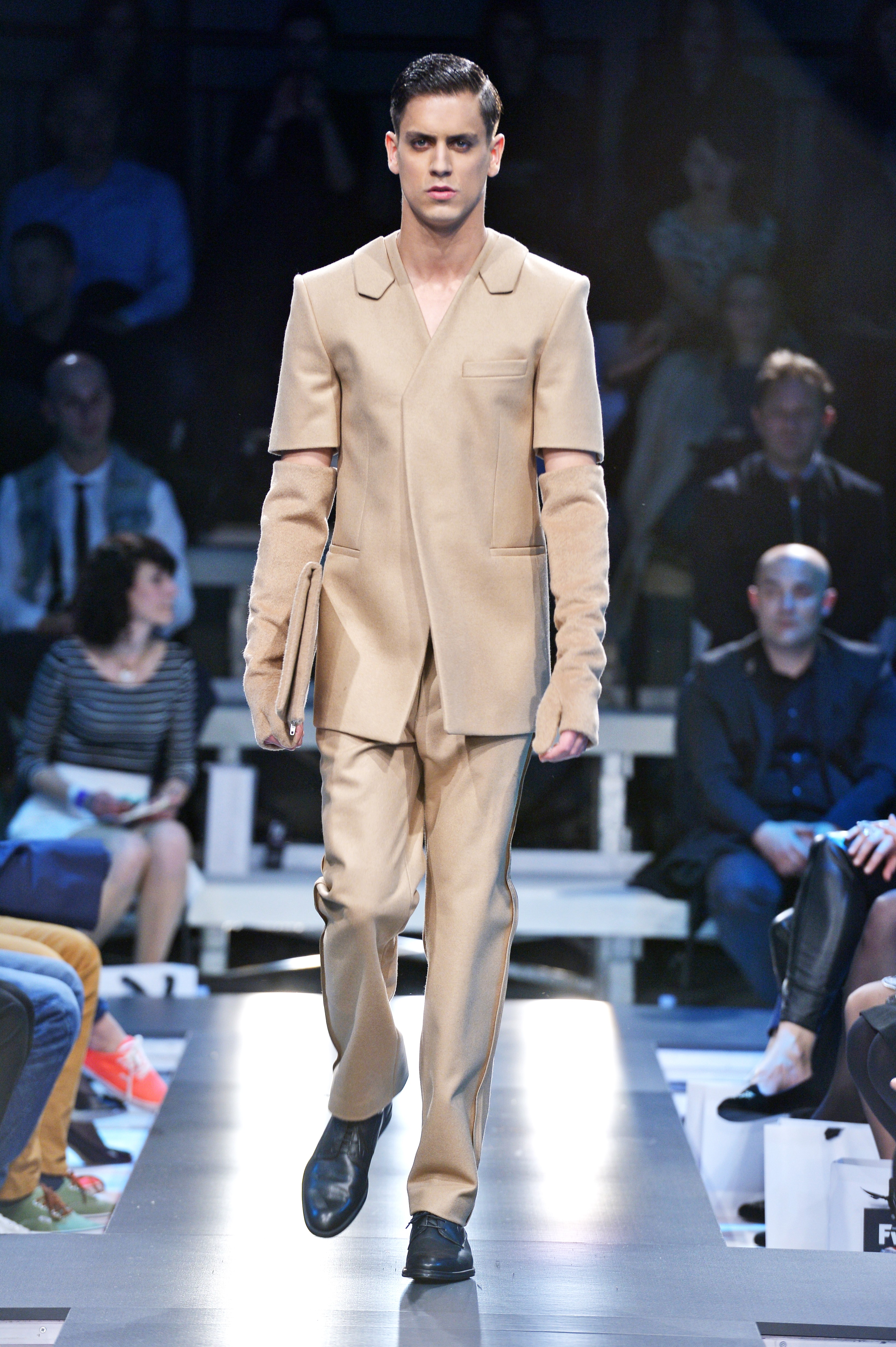 Materiais pesados, embrulhado em camelo, preto e cinza, eles trabalharam em contraste incrivelmente fácil. Eles são o fio condutor da coleção detalhes de camadas onduladas, cortes assimétricos e brincadeiras com comprimentos. Ele deixou assim uma doce impressão um toque de guerreiros futuristas e feminilidade romântica.