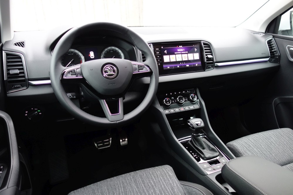 Škoda Karoq v segment SUV prinaša tehnologijo, ki smo jo že videli pri Kodiaqu in drugih SUV-ji iz istega koncerna. Aktivni informacijski zaslon pred voznikom je digitaliziran in lahko izbiramo med več možnostmi prikazovanja podatkov. Iluminação ambiente está disponível em 10 cores, in ko odpremo vrata, nam tla osveti svetlobni napis koda. Osrednji zaslon je v velikosti 9,2 polegadas in omogoča povezavo s pametnimi telefoni, navigacijo, avtoradiem in drugimi sistemi. Na izbiro imamo 14 barv zunanjosti, med katerimi je 10 kovinskih.