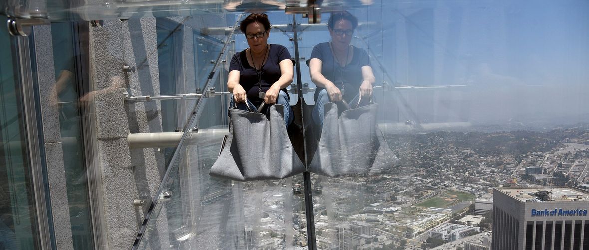 O arranha-céu US Bank Tower agora tem uma conexão interessante. 305 metros acima do solo, ou se medirmos em andares, no 70º andar, sobressai um fechado lâmina de vidro, que oferece uma visão dos vastos arredores. Qualquer pessoa com tendências suicidas pode comprá-lo por US$ 25.