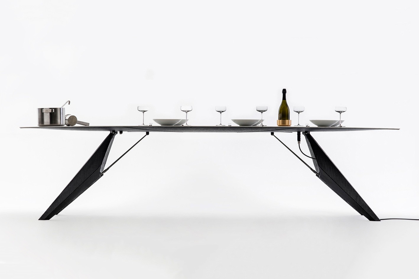 Este pode fazer o que eles podem fazer juntos fogão, geladeira e carregador para dispositivos móveis. A mesa sensível ao toque tem, além de sua função original também os papéis de cozimento por indução e carregamento sem fio de dispositivos móveis, tecnologia escondida invisivelmente no placas de cerâmica de 6 mm, mas também permite esfriando a bebida.