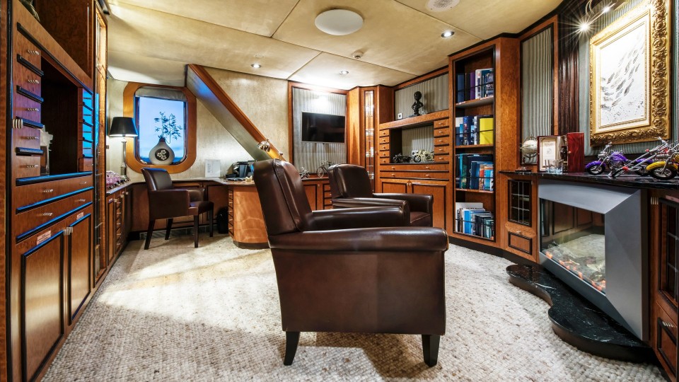Todos aqueles que preferirem ficar no abrigo seguro do iate estão à sua disposição jacuzzi no deck, salão de beleza, spa e sauna e academia de ginástica totalmente equipada. Acrescentemos também que o iate possui uma gigantesca suíte master com terraço privativo e jacuzzi.