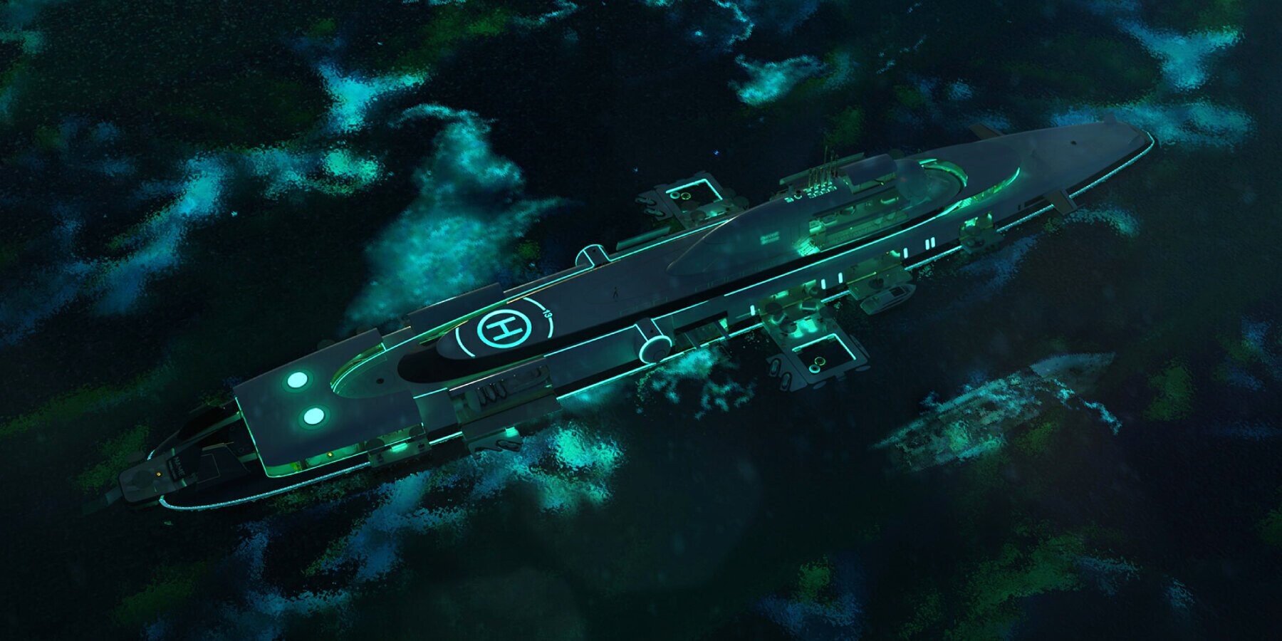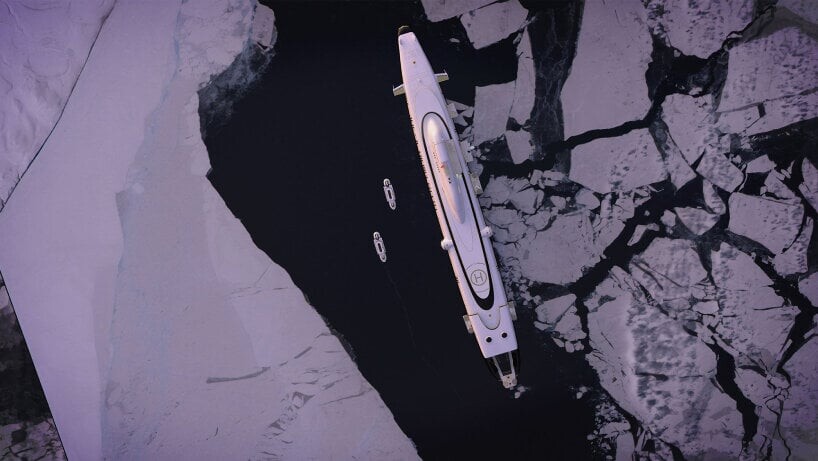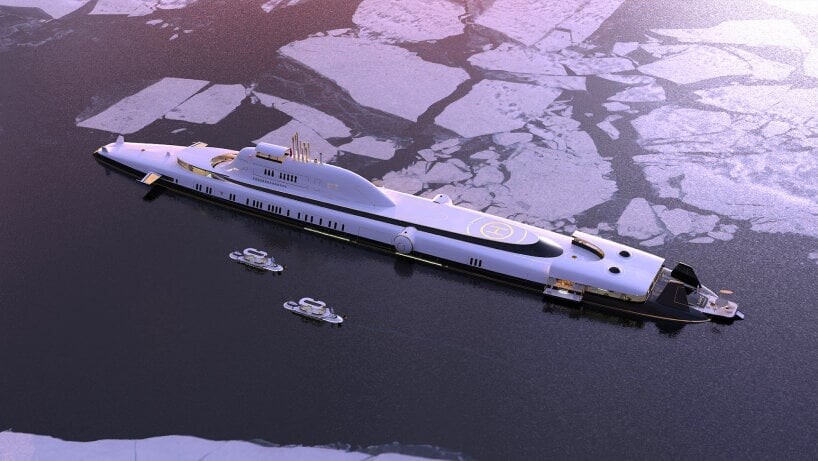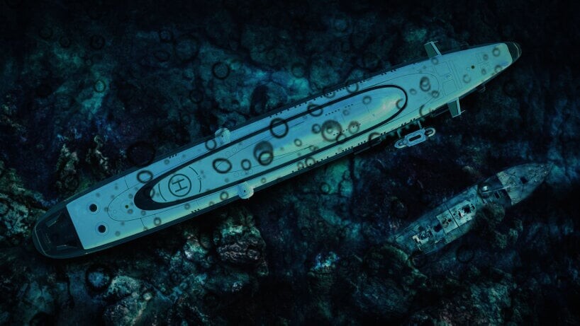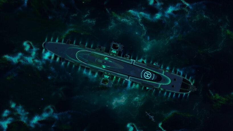 Este super iate subaquático também possui todo o equipamento de emergência necessário acima e abaixo da água. Luxo adicional é fornecido pelo heliporto e hangar de helicópteros localizados em um dos cascos de pressão. Veículos aéreos e terrestres como drones, balões de ar quente, SUVs, caminhões e outros veículos também são bem-vindos a bordo.