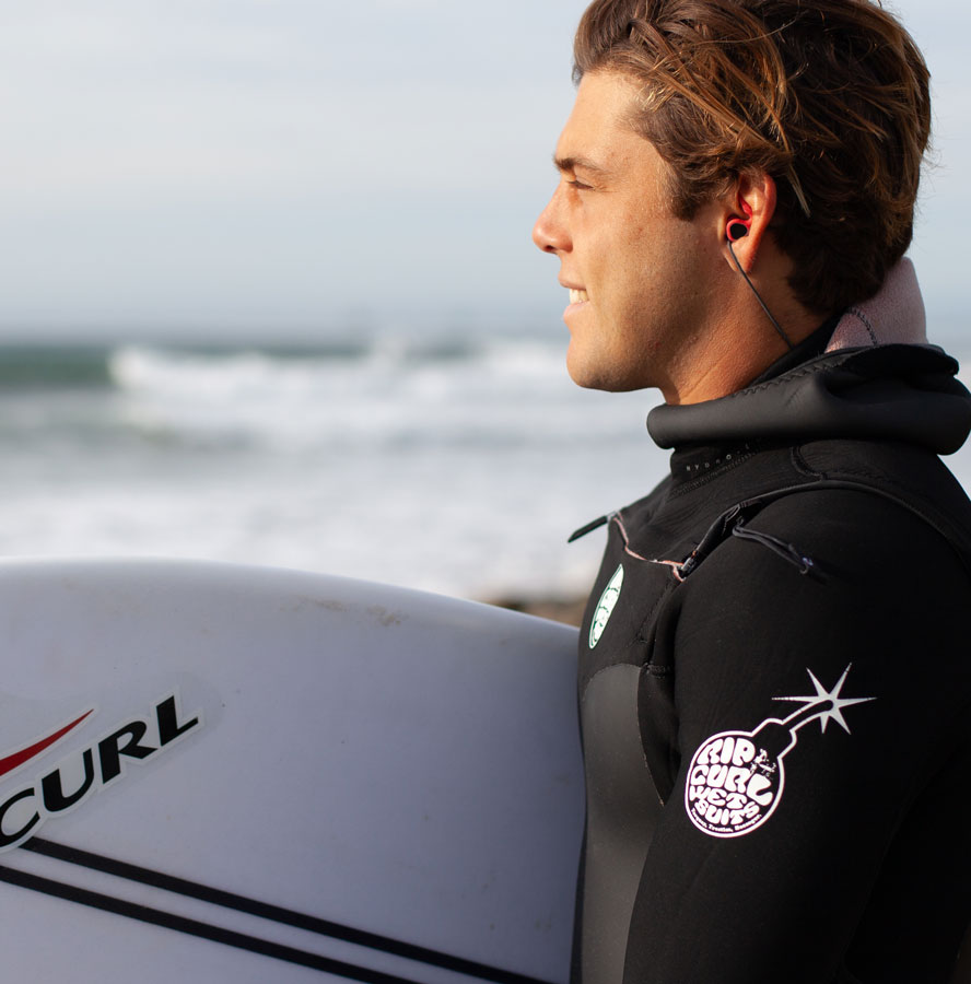 Atletas que passam grande parte de suas vidas no mar estão constantemente expostos à água fria e ao vento. Os tampões de ouvido SurfEars 3.0 são uma excelente proteção para seus ouvidos.