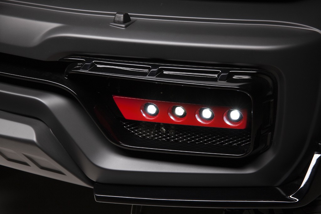 conjunto japonês Wald Black Bison com um conjunto de peças externas e rodas novas, transforma o Jimny em Clone do Mercedes Classe G. As aberturas e grades duplas do capô dão ao Jimny uma aparência mais agressiva, enquanto os para-lamas aparafusados abrem espaço para pneus off-road maiores. Também estão incluídos spoilers de teto central e traseiro com luzes de LED, faróis de neblina de LED na cor vermelha e tampa da roda sobressalente.