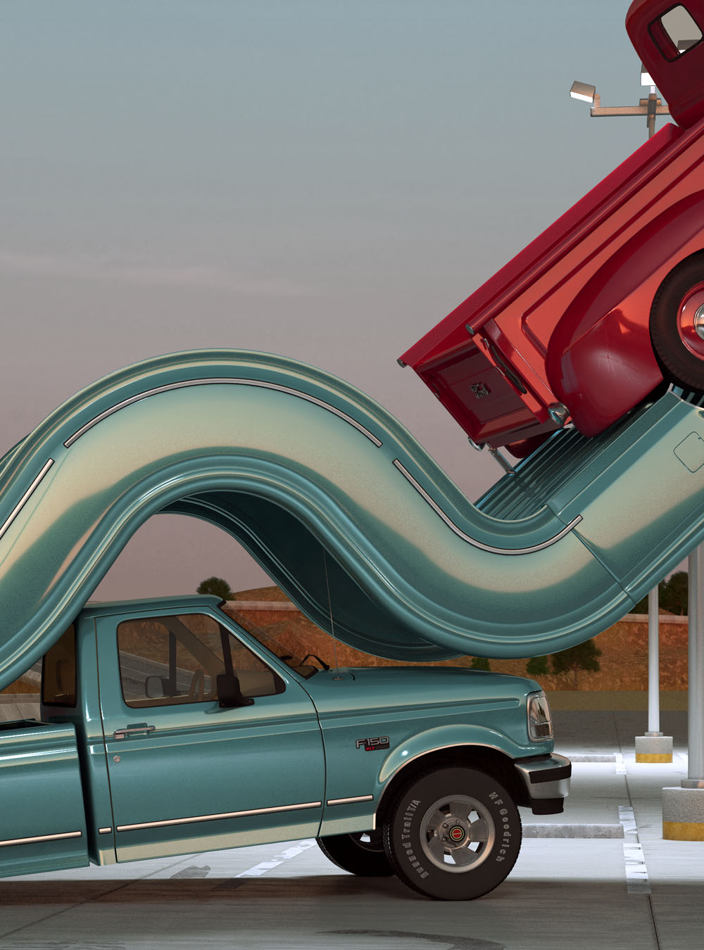 Quando falamos de chapas laminadas, o assunto costuma recair na crônica negra. Mas não no nosso caso. A saber, apresentamos a série do artista inglês Chris Labrooy intitulada "Tales of Auto Elasticity". São instalações digitais, veículos de entrega curvos em estacionamentos abandonados que agem como algo espremido para fora de um tubo.