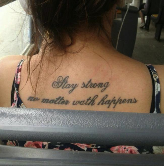 Para alguns tatuagens com erros ortográficos com um erro gramatical, provavelmente era apenas sobre um erro infeliz, com os quais esses indivíduos provavelmente terão que conviver pelo resto de suas vidas, enquanto para outros não podemos deixar de notar que provavelmente foram tão o dono da tatuagem como um tatuador analfabeto, mas ao mesmo tempo não lhes ocorreu submeter o assunto mais cedo na revisão. E a receita para o desastre está aqui!