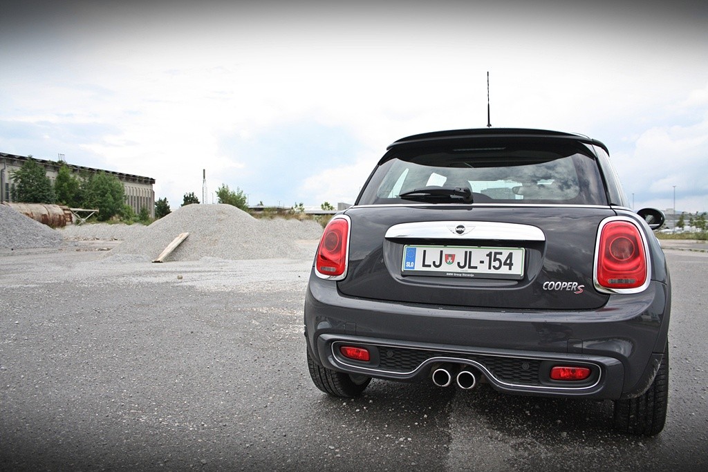 O različici še vedno zgovorno pričajo številne črke S na karoseriji, odprtina za zajem zraka in prej omenjeni odprtini spodaj, na boku je razlik manj, na zadku pa se na stičišču strehe in zadnjega stekla “bohoti” večji spojler, na spodnjem delu pa športni odbijač z dvojno izpušno cevjo. “Pompa” je s tem ravno dovolj, kljub vsemu pa ne prinaša presežkov. Nekaj pač more biti rezervirano za različico JCW, ki še pride.