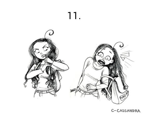 Katere so težave, s katerimi se vsak dan spoprijemajo dekleta z dolgimi lasmi, je z ilustracijami lepo ponazorila Cassandra Calin.