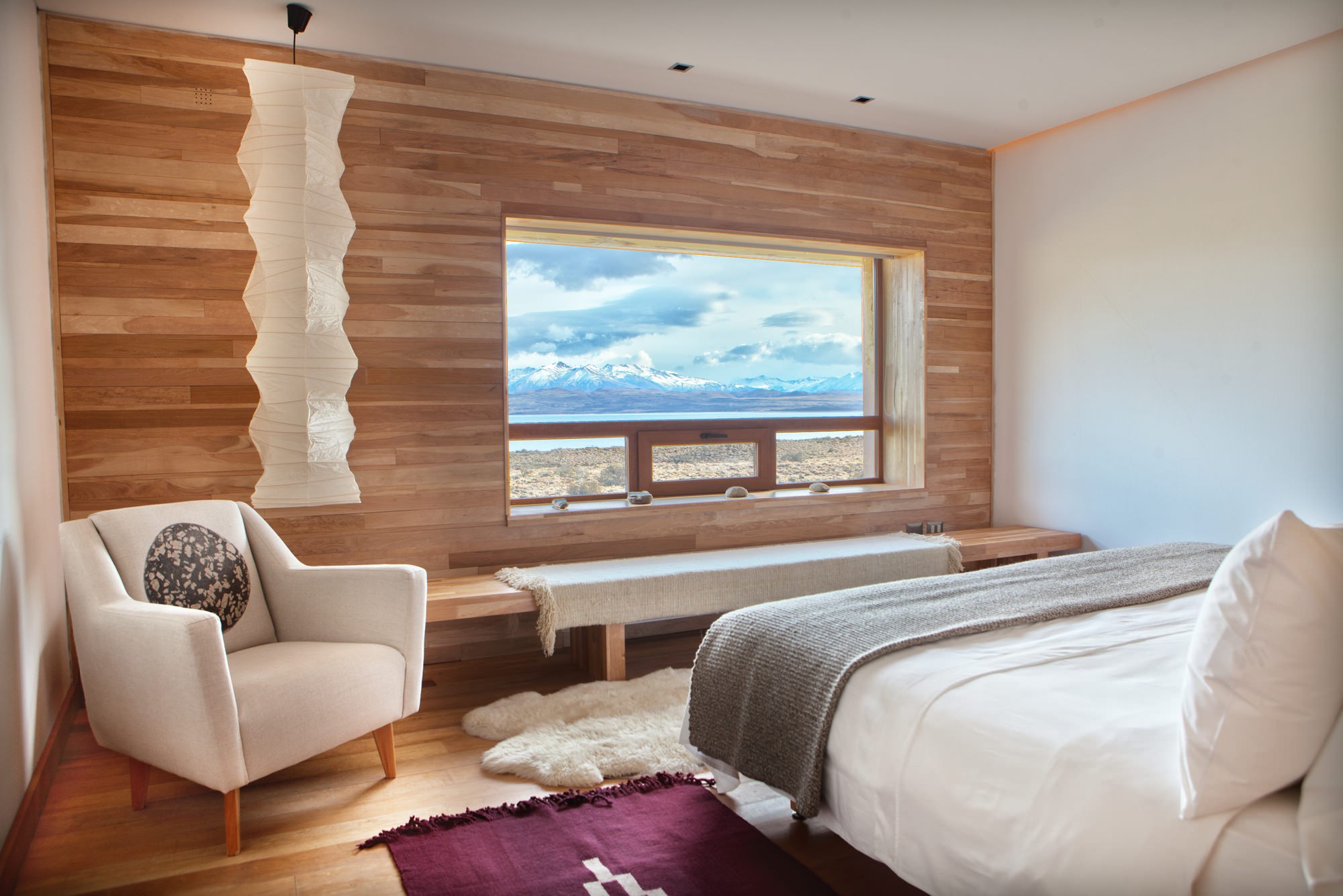 Hotel Tierra Patagonia dispõe de 40 quartos em madeira com mobiliário minimalista, que aliam o conforto rústico ao luxo. O ambiente é ideal para quem é ativo, e os hóspedes podem terminar os dias escalando ou ativamente no canto do spa. Isto por si só é um bom motivo para visitar, porque juntamente com as vistas, oferece muito prazer mesmo aos visitantes menos activos.